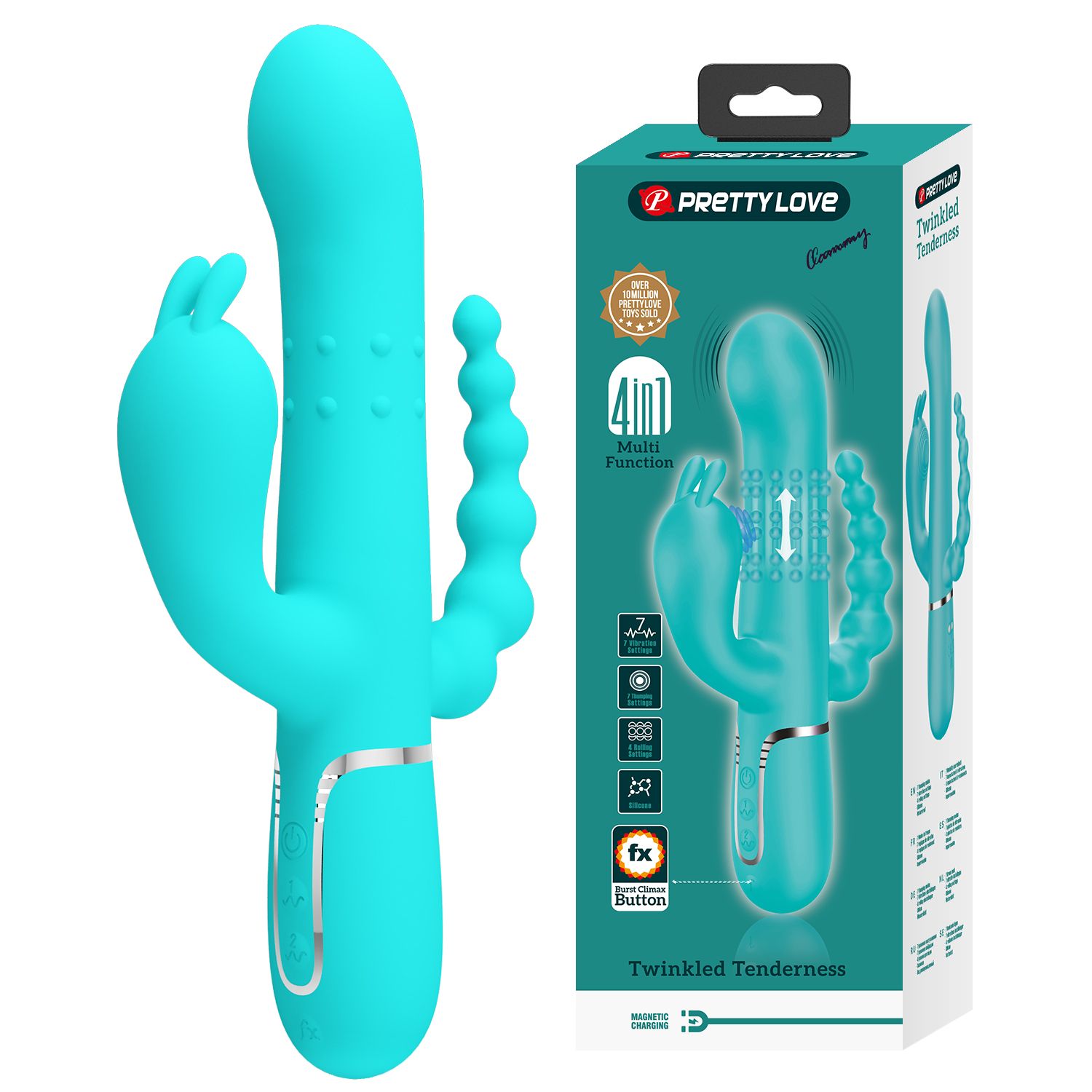Тройная стимуляция с помощью особо мощных вибраций! Тройной вибратор Pretty Love – это изящно изогнутый вибратор-кролик с анальным стимулятором, который обеспечивает одновременную вагинальную, клиторальную и анальную стимуляцию. Его головка оснащена 7 функциями вибрации, а стержень с 4 функциями перекатывания шариков массирует влагалище и особенно точку G. Стимулятор клитора идеально воздействует на внешние горячие точки благодаря 7 функциям стимуляции толчками, в то время как гибкие шарики стимулируют анальную область. А нажатие кнопки Brust Climax может обеспечить всестороннюю стимуляцию в лучшем виде! Силиконовая конструкция с шелковистой текстурой, приятной на ощупь, позволяет легко вводить. Она идеально адаптируется к анатомии и движениям тела. Рабочая длина – 12 см.