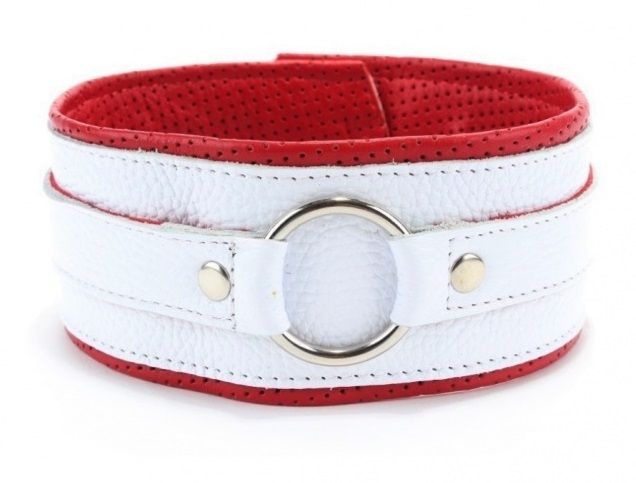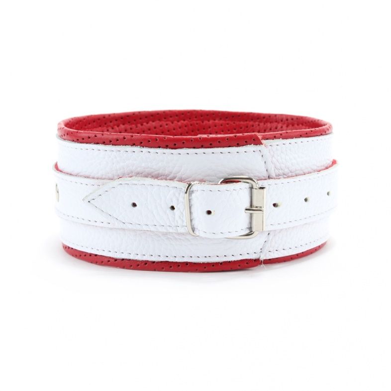 Бело-красный кожаный ошейник