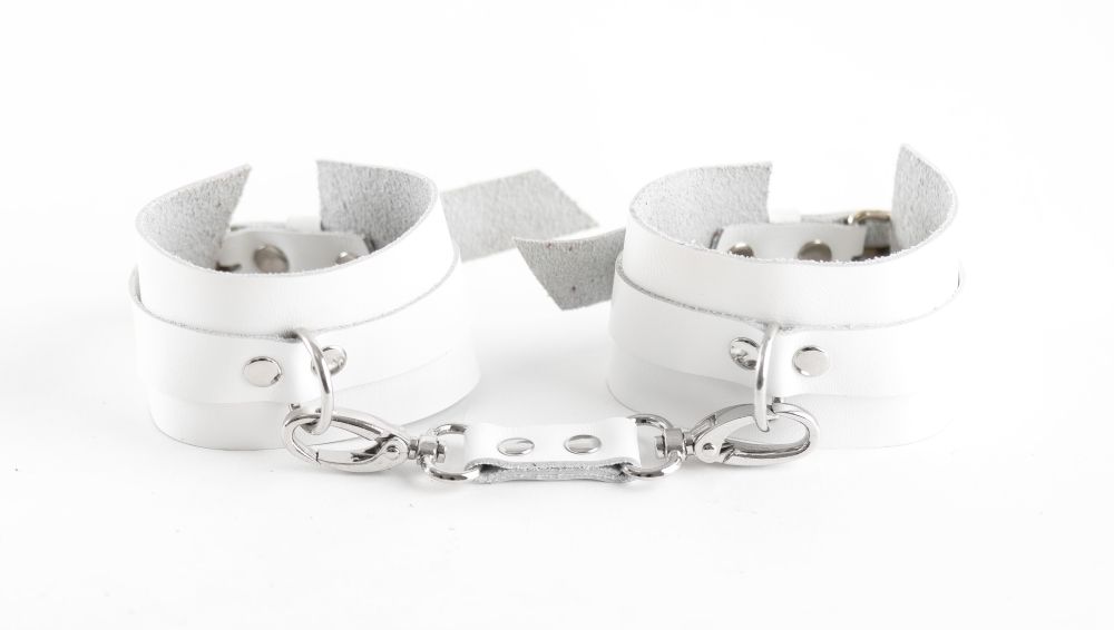 Белые наручники из натуральной кожи