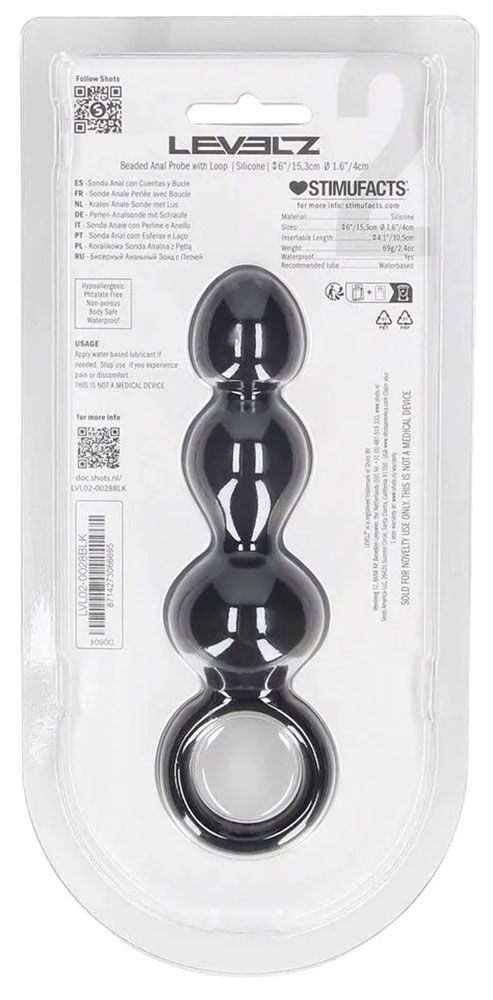 Черная анальная елочка Beaded Silicone Anal Probe with Loop
