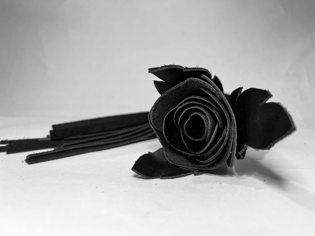 Восхитительная мини-плеть, украшенная чёрной розой. Цветок полностью выполнен из натуральной лаковой кожи, листочки розы, рукоятка и хвосты плети – натуральная мягкая кожа. Размеры этой плети очень изящны, поэтому данную плеть можно использовать, как генитальную, чтобы добавить новых ярких ощущений. Розочка очень удобно лежит в руке и создает неповторимую атмосферу и настроение, этот аксессуар никого не оставит равнодушным!