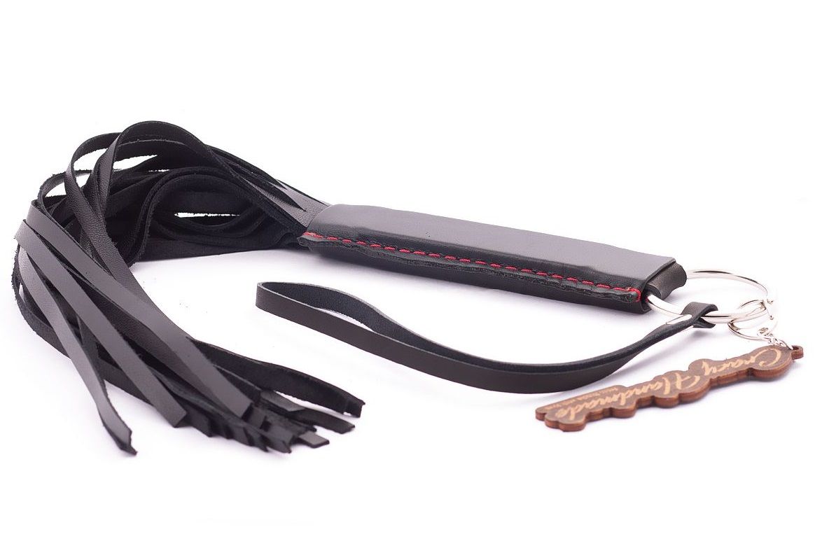 Черная кожаная плеть с удобной ручкой – 50 см.