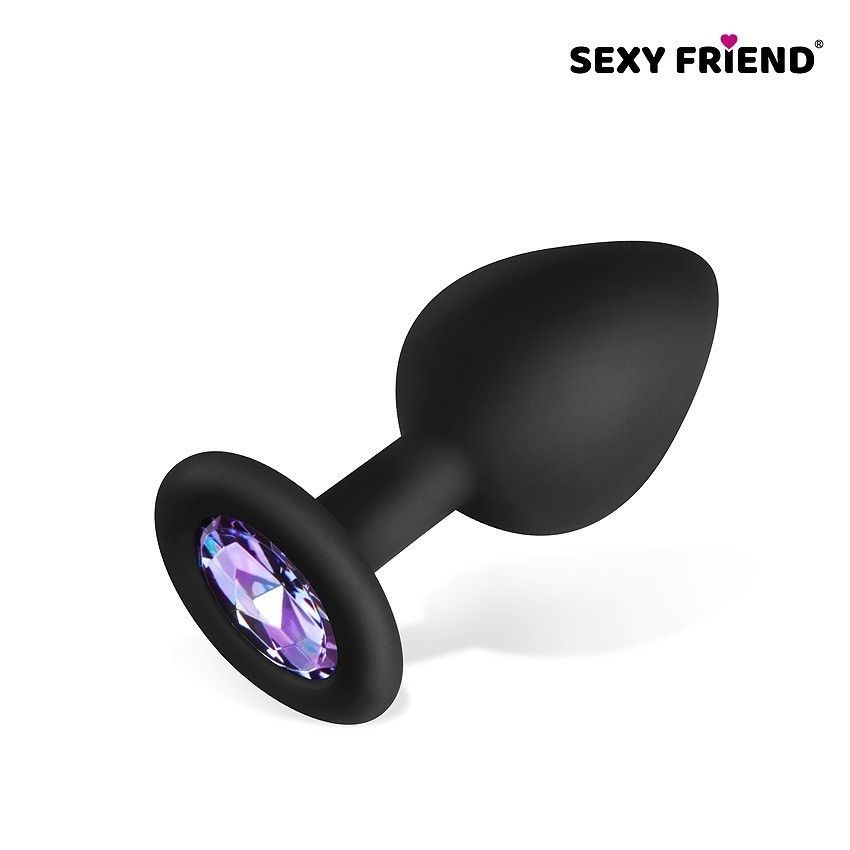Черная силиконовая анальная втулка с сиреневым кристаллом – 8 см.
