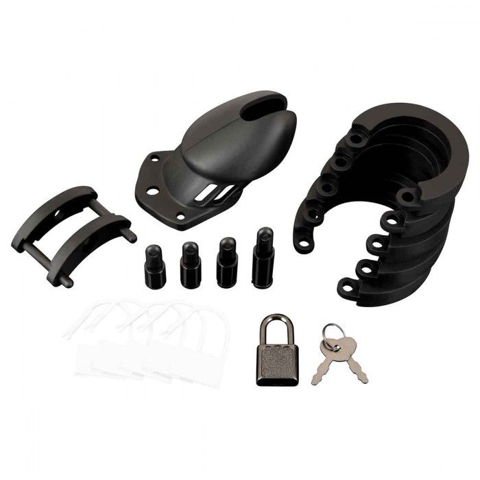 Силиконовая гибкая клетка целомудрия для члена, хоть и предназначена для сексуальных пыток, одновременно с этим является максимально комфортной и безопасной. Кольца состоят из трех соединяющихся друг с другом частей. Два направляющих штифта удерживают вместе верхние части. Кольца разных размеров входящие в каждую упаковку, позволяют подобрать нужную посадку. Не позволяет прикасаться к своим гениталиям для получения сексуального удовольствия и дает держателю ключа возможность контролировать сексуальное возбуждение. Данный тип клетки идеально подходит для начинающих, потому что изготовлен из безопасного для тела силикона. Гибкая конструкция может быть использована для длительного ношения. Имеются вентилируемые отверстия для комфорта. В комплекте замок и ключ.
