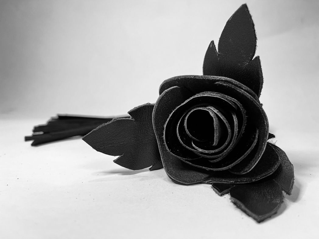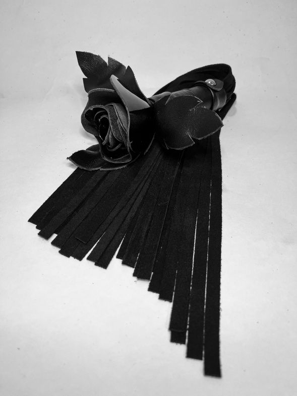 Восхитительная мини-плеть, украшенная чёрной розой. Цветок полностью выполнен из натуральной лаковой кожи, листочки розы и рукоятка выполнены из мягкой натуральной кожи, а хвосты плети – натуральная мягкая замша. Размеры этой плети очень изящны, поэтому данную плеть можно использовать, как генитальную, чтобы добавить новых ярких ощущений. Розочка очень удобно лежит в руке и создает неповторимую атмосферу и настроение, этот аксессуар никого не оставит равнодушным!