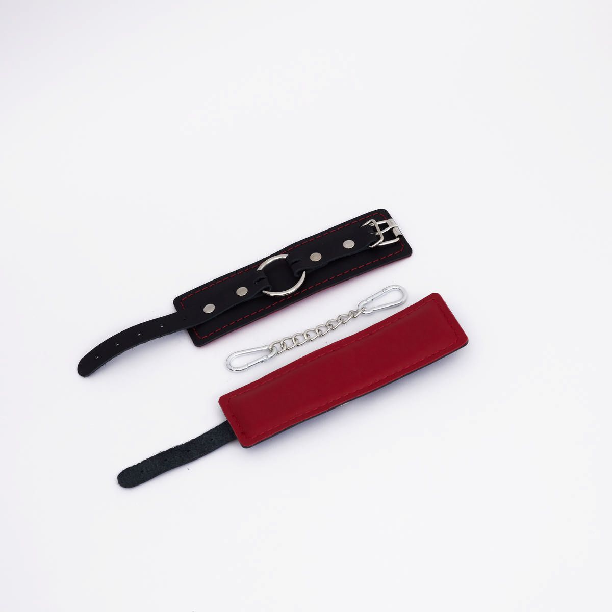 Черно-красные кожаные наручники