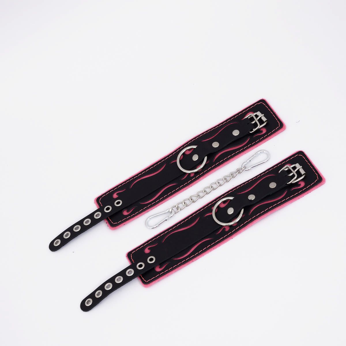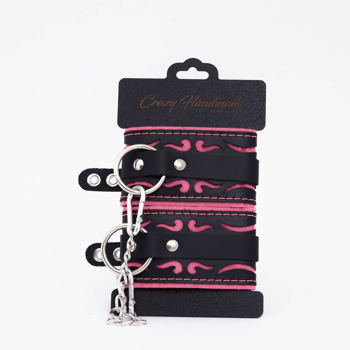 Черно-розовые кожаные оковы с розовой строчкой