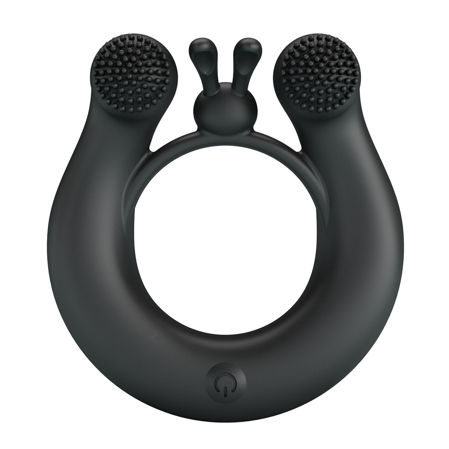 Черное эрекционное кольцо Dahlia с 2 стимулирующими щеточками