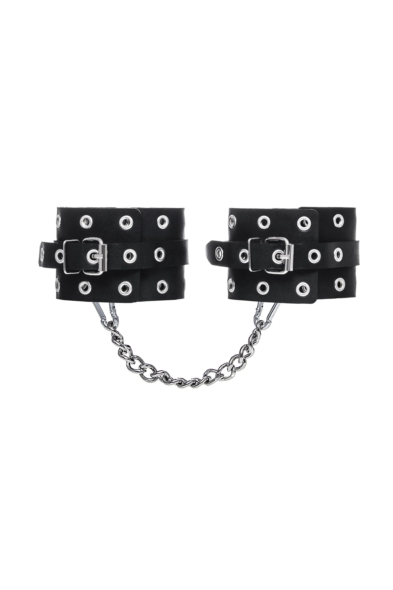 Эти однослойные кожаные оковы с контрастной строчкой красного цвета могут стать стильным аксессуаром, а могут послужить вашим целям по своему прямому назначению. Частичное обездвиживание и невозможность двигать руками или ногами дают вам полную власть над партнером – взрослые игры для взрослых. Наличие двух колец и карабинов, соединенных между собой кожаным ремешком, позволяет использовать изделие как раздельно – аксессуар-манжеты, так и как оковы для фиксации. К широким металлическим кольцам также можно присоединить и другие аксессуары при помощи карабинов. Благодаря универсальному размеру оковы могут использоваться и мужчинами, и женщинами. Размер легко регулируется с помощью металлических пряжек, органично вписывающихся в общий стиль. Длина манжет – 25 см, ширина – 6,5 см. Длина сцепки – 17 см.