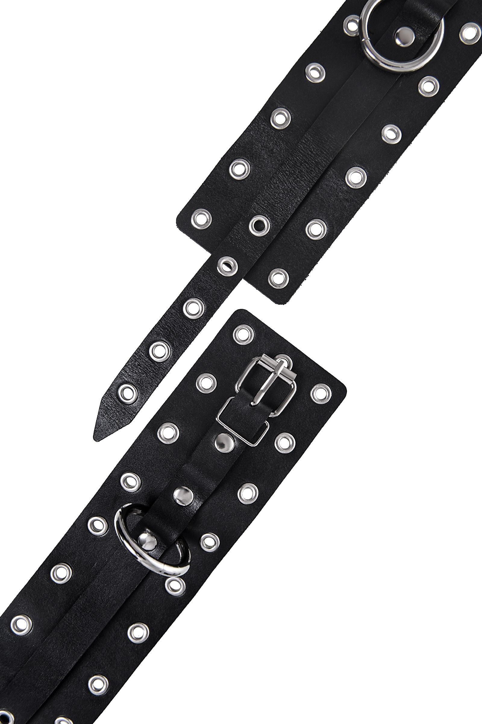 Эти однослойные кожаные оковы с контрастной строчкой красного цвета могут стать стильным аксессуаром, а могут послужить вашим целям по своему прямому назначению. Частичное обездвиживание и невозможность двигать руками или ногами…