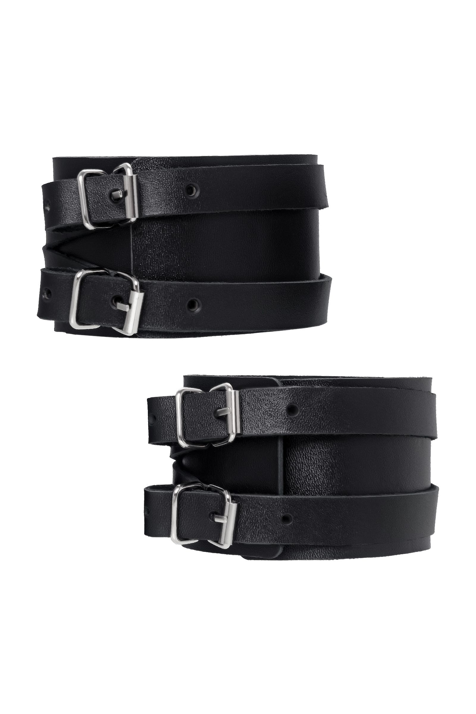 Черные кожаные оковы с двумя перекрёстными ремешками