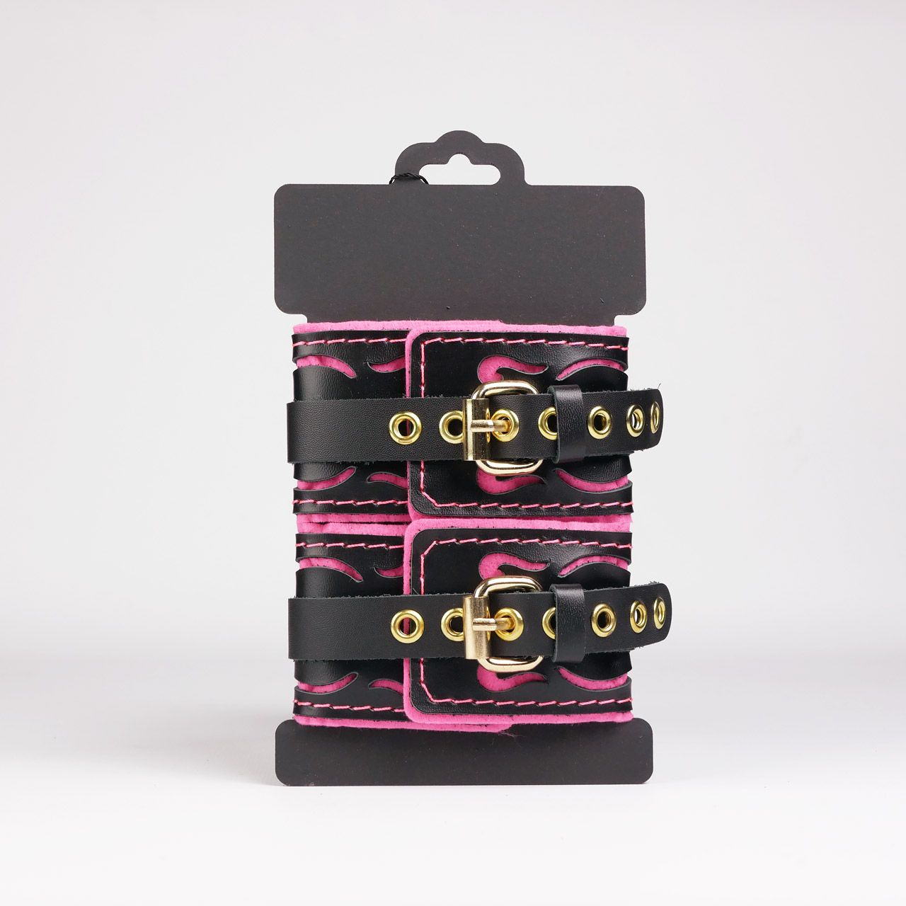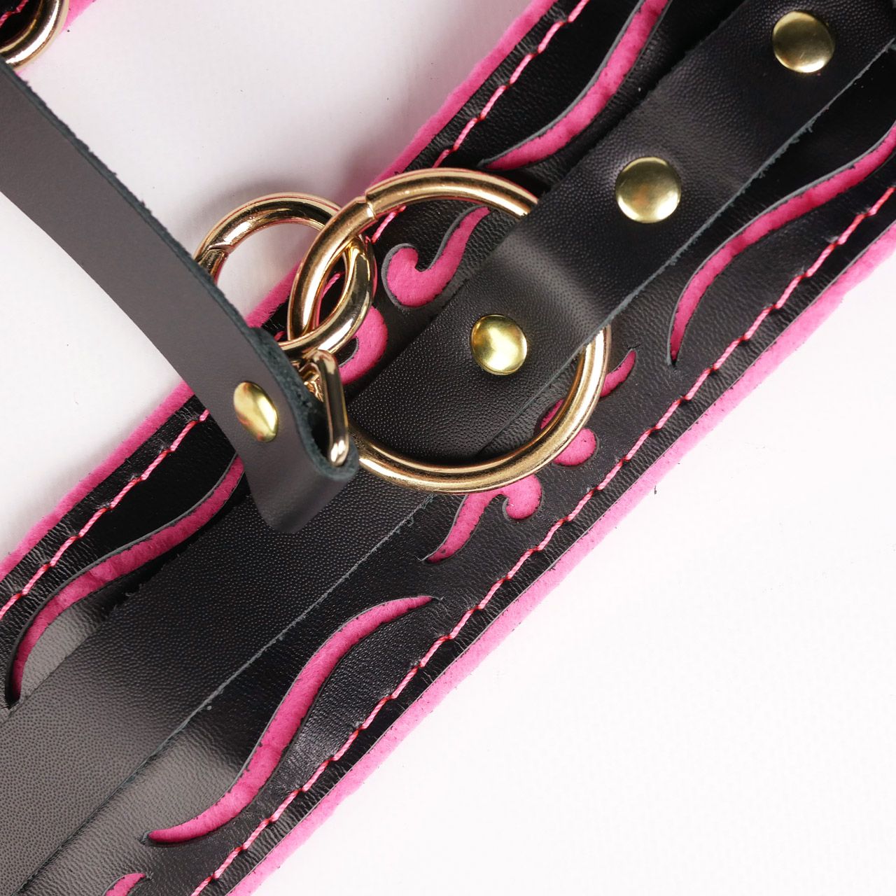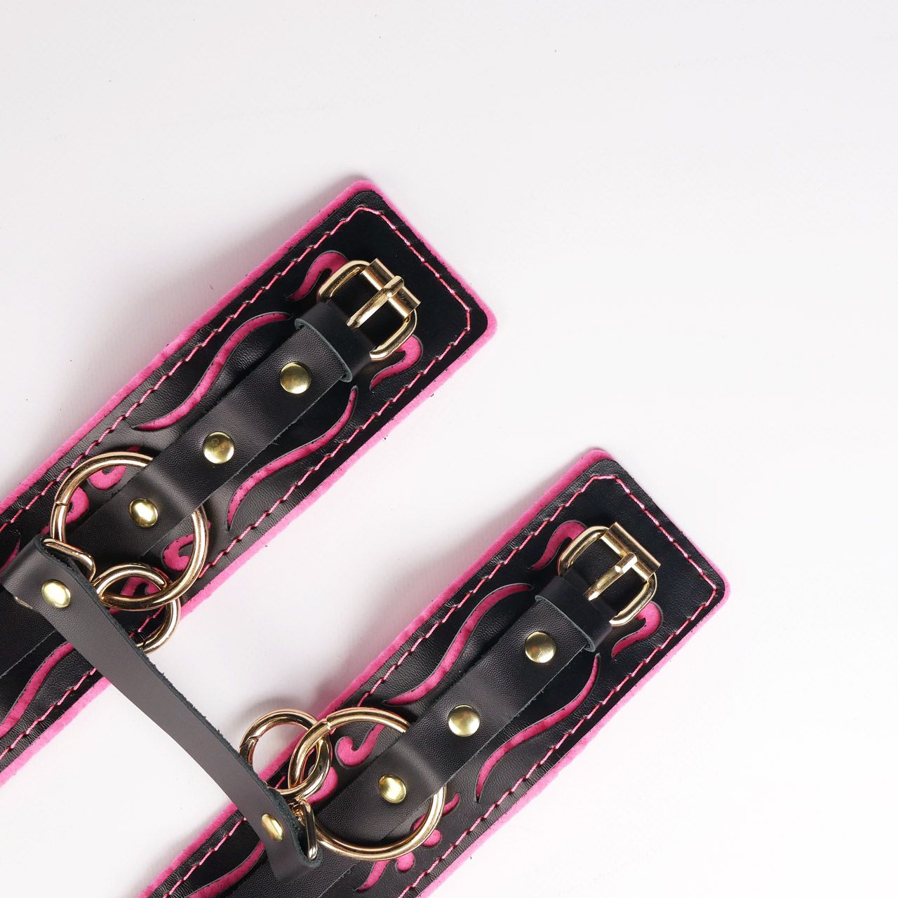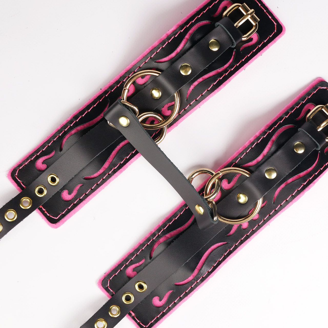 Черные кожаные оковы с розовой строчкой