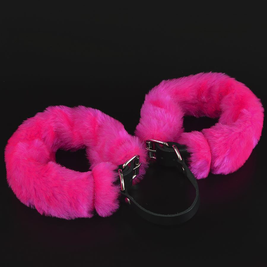 Черные кожаные оковы со съемной ярко-розовой опушкой