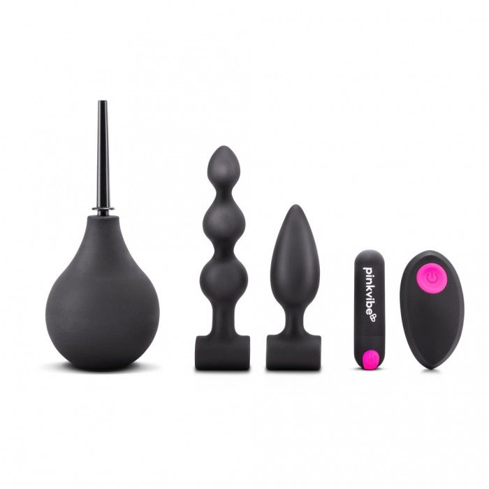 Набор для начинающих, подготавливающий к анальному сексу включает в себя: гигиенический анальный душ, виброэлемент на дистанционном управлении, небольшой силиконовый анальный плаг и анальную елочку из силикона. Начните с использования анального душа, чтобы получить ощущение чистоты и свежести. Это повысит ваш комфорт и уверенность перед анальными играми. Сожмите грушу и опустите кончик насадки в воду комнатной температуры. Перед использованием смажьте насадку анальной смазкой-гелем на водной основе и медленно вводите наконечник в задний проход. Нажмите на грушу так, чтобы вода попала в тело. Уберите душ из анального отверстия и подождите, пока вода стечет естественным образом наружу. Используйте душ за полчаса до анальных игр. Не используйте часто и не вливайте большое количество воды, так как это может привести к раздражению и нарушению естественного баланса организма. Универсальный виброэлемент имеет компактный размер. Вы можете вставить его внутрь плага или елочки, а также использовать его отдельно для стимуляции различных эрогенных зон на теле. Зарядите этот вибростимулятор через USB-кабель, прилагаемый в комплекте. Полная зарядка аккумулятора продлится 120 минут и обеспечит 60 минут беспрерывной работы. Чтобы активировать вибрацию, нажмите кнопку на пульте дистанционного управления или на виброэлементе, чтобы выбрать одну из 3 скоростей и 7 режимов работы. Длина виброэлемента – 7,5 см, диаметр – 2 см. Рабочая длина пробки – 8 см, диаметр – 3 см. Рабочая длина елочки – 12 см, диаметр – 2-3 см.