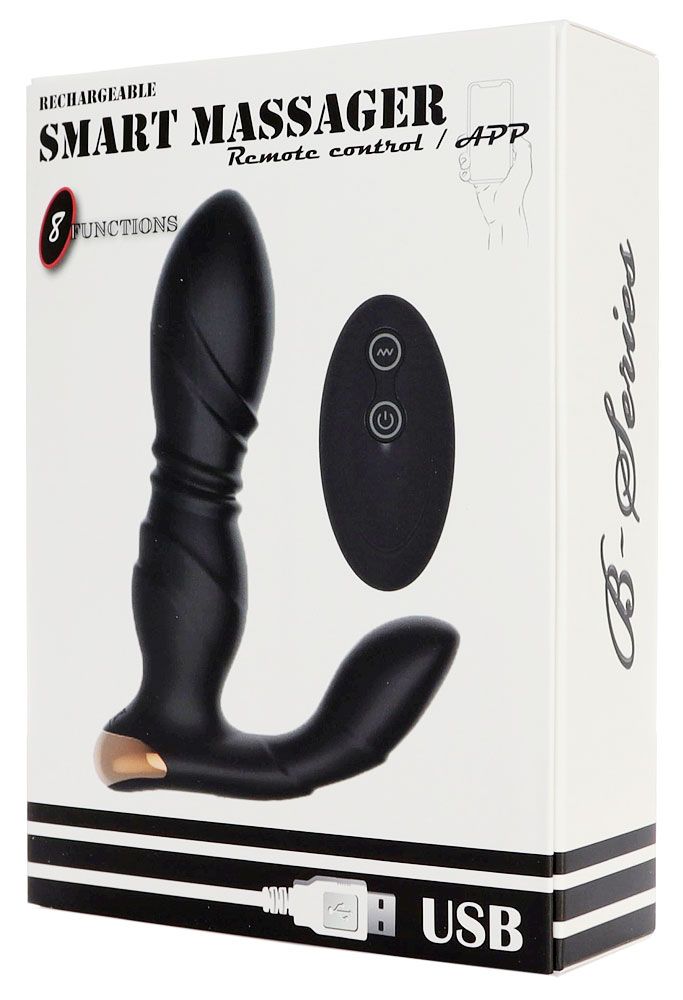 Черный L-образный вибромассажер простаты с пультом ДУ