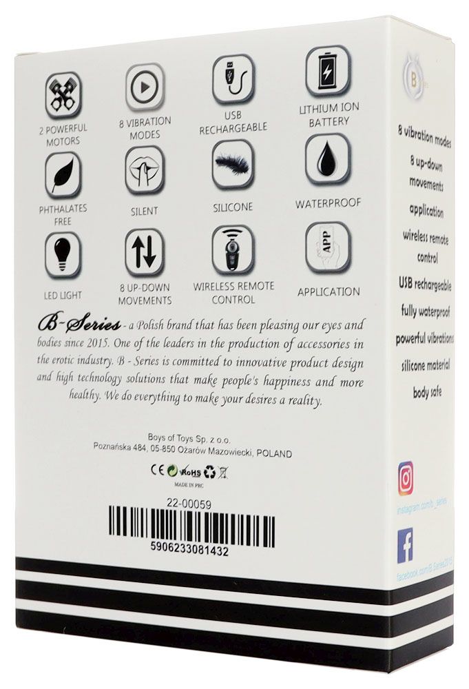 Универсальный современный массажер оснащен двумя моторчиками, которые обеспечивают чрезвычайно сильную и равномерную вибрацию, а движение вверх-вниз (поступательное) добавляет еще больше удовольствий. Массажером можно управлять с помощью пульта дистанционного управления. Водонепроницаем….