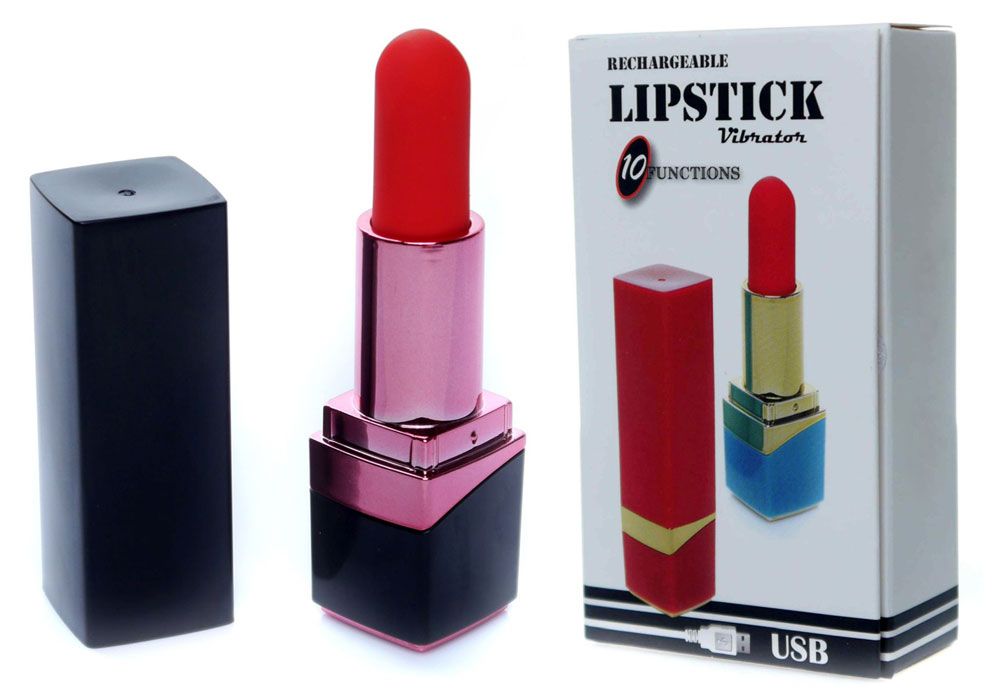 Черный мини-вибратор в форме помады. Имеет 10 режимов вибрации. Зарядка осуществляется с помощью USB-магнит кабеля.
