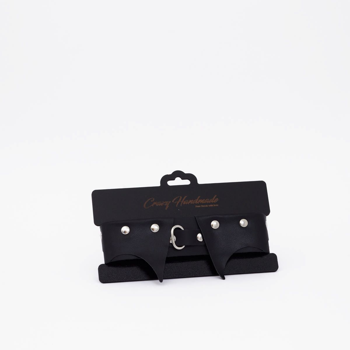 Черный однослойный кожаный ошейник с имитацией фигурного воротничка