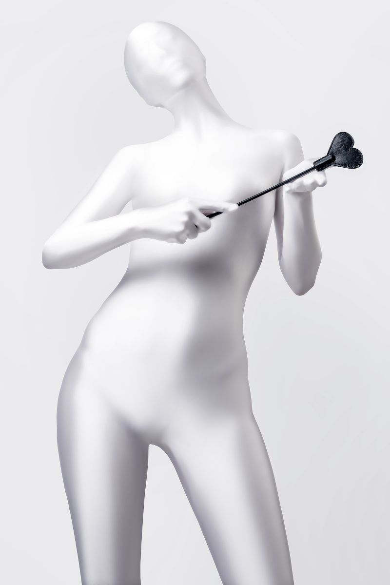 Доминирование и подчинение с помощью ограничения свободы — это еще не все, что вы можете сделать друг с другом. Черный стек с наконечником в форме сердечка-черви пригодится для ощутимого наказания…