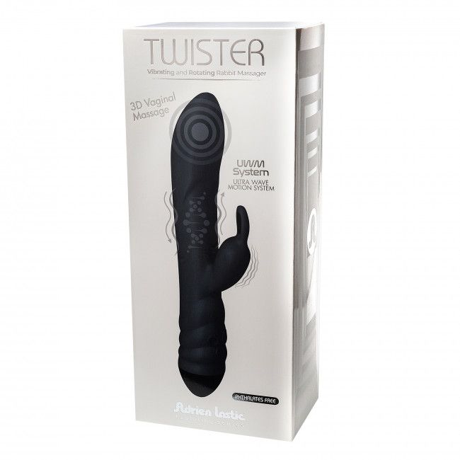 Черный вибратор с клиторальным стимулятором Twister – 23 см.
