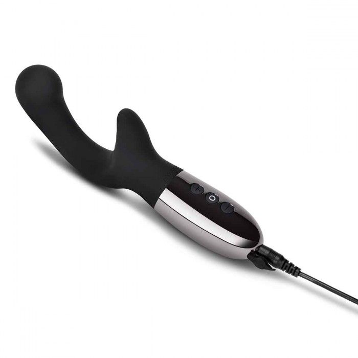 Черный вибромассажер с двумя моторами Le Wand XO – 19 см.