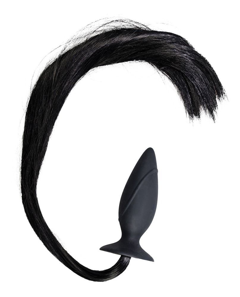 Чёрная анальная втулка с хвостом HORNY Pony – 12,5 см.