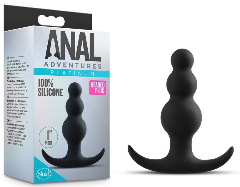 Чёрная фигурная анальная пробка Beaded Plug. Широкое ограничительное основание. Рабочая длина – 6,35 см.