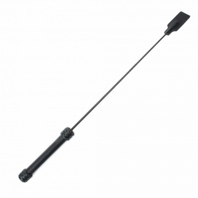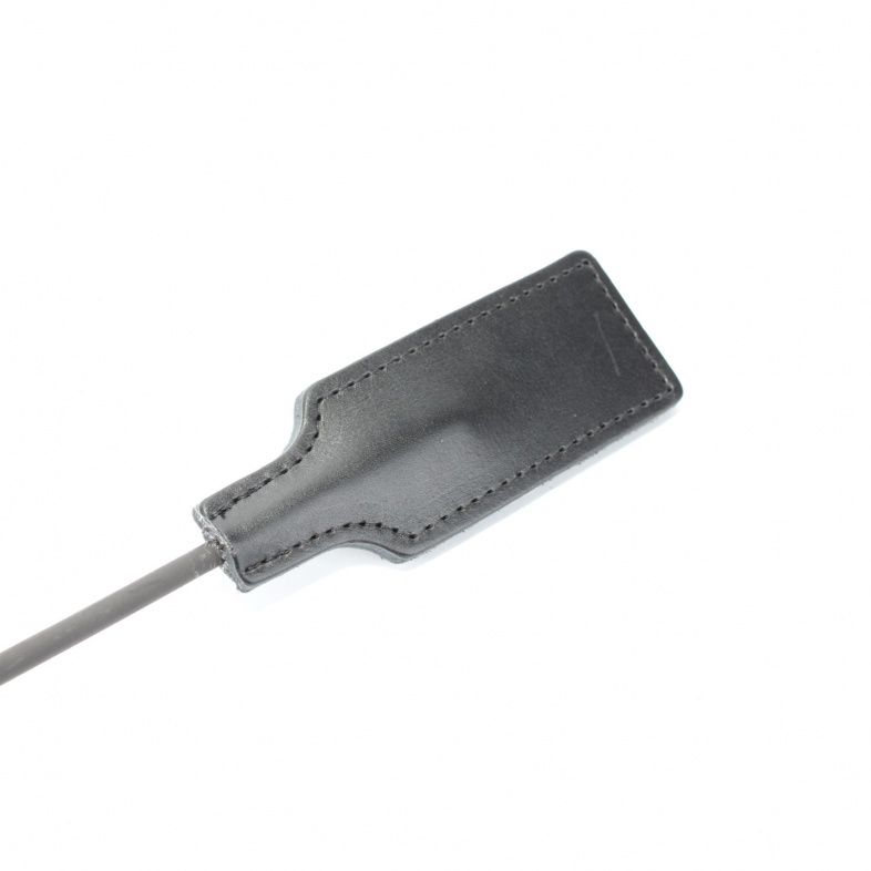 Рукоятка стека выполнена из натуральной кожи черного цвета с плетением, на конце девайса расположен кожаный шлепок. Гибкий и надежный стек доставит максимальное удовольствие партнерам от БДСМ игры. Размеры хлопушки – 8 х 4 см. Длина рукояти – 20 см.