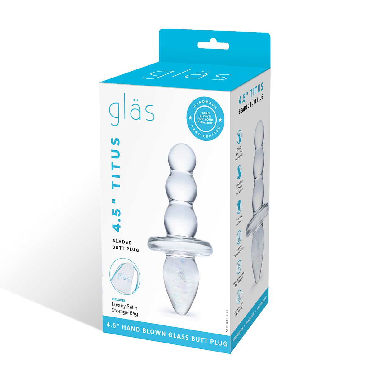Ощущение гладкости стекла и его кристально прозрачный вид соблазнят тех, кто ищет шикарный предмет для удовольствия. Каждая игрушка в линейке Gläs подобна произведению искусства, доведенному до совершенства. Эта забавная анальная пробка-ёлочка из прозрачных стеклянных бусин идеально подходит для расширения прямой кишки, одиночной мастурбации и парных игр. Анальная пробка Titus с бусинами имеет два пригодных для использования конца, которые идеально подходят для различных видов стимуляции. На одном конце есть три последовательно увеличивающихся к основанию бусины, позволяющие увеличивать интенсивность ощущений для более глубокой стимуляции. Другой конец украшен переливающейся спиралькой внутри. При этом любой конец работает как ручка для легкого маневрирования. Изготовленная из высокопрочного стекла ручной работы, игрушка рассчитана на длительный срок службы. Она идеально подходит для мужчин и женщин. Ёлочка Titus гипоаллергенна, чрезвычайно гигиенична и проста в уходе, достаточно просто промыть водой с мылом. Нагрейте или охладите эту игрушку в воде нужной температуры, и она сохранит тепло и холод для усиленной стимуляции. Используйте с вашим любимым лубрикантом: эта игрушка совместима с любыми видами интимных средств. Длина ёлочки – 5,5 см, минимальный диаметр – 1,9 см, максимальный – 2,4 см. Длина конуса – 5 см, диаметр – 2 см.