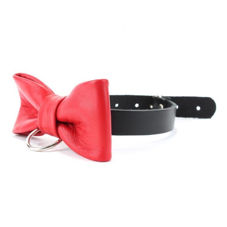 Очень элегантный и стильный аксессуар! Ремень ошейника выполнен из натуральной черной кожи. Декор в виде банта из красной натуральной кожи подчеркнет индивидуальность, станет отличным дополнением в выбранный образ. Ремень сзади позволяет выбрать нужный размер, подходит на обхват от 21 до 35 см, металлическая пряжка надежно фиксирует аксессуар. Размер банта – 12 х 6 см. Ширина ремней – 2 см.