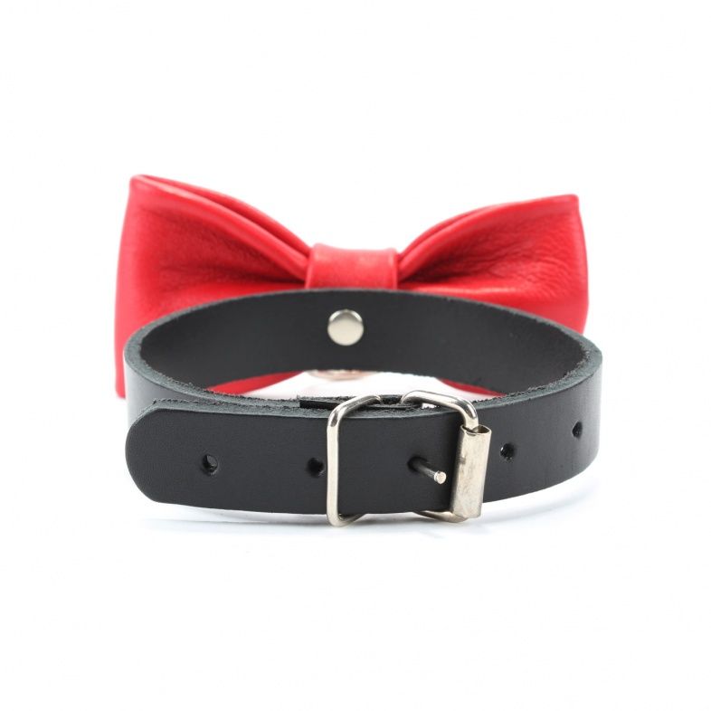 Очень элегантный и стильный аксессуар! Ремень ошейника выполнен из натуральной черной кожи. Декор в виде банта из красной натуральной кожи подчеркнет индивидуальность, станет отличным дополнением в выбранный образ. Ремень сзади…