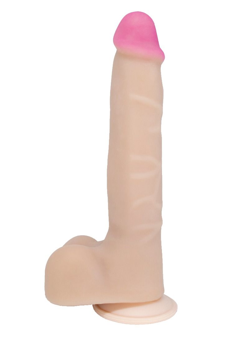 Точная копия возбужденного фаллоса довольно крупных размеров станет достойным пополнением ваших аксессуаров для секса. Этот чувственный фаллоимитатор из материала, подобного человеческой коже, наградит вас массой новых ощущений. Объемная головка со стимулирующим основанием, упругое тело с прорисованными венами и нежная мошонка доведут вас до оргазма не один раз! Фаллос можно закрепить при помощи присоски на любой ровной поверхности. Рабочая длина – 19 см.