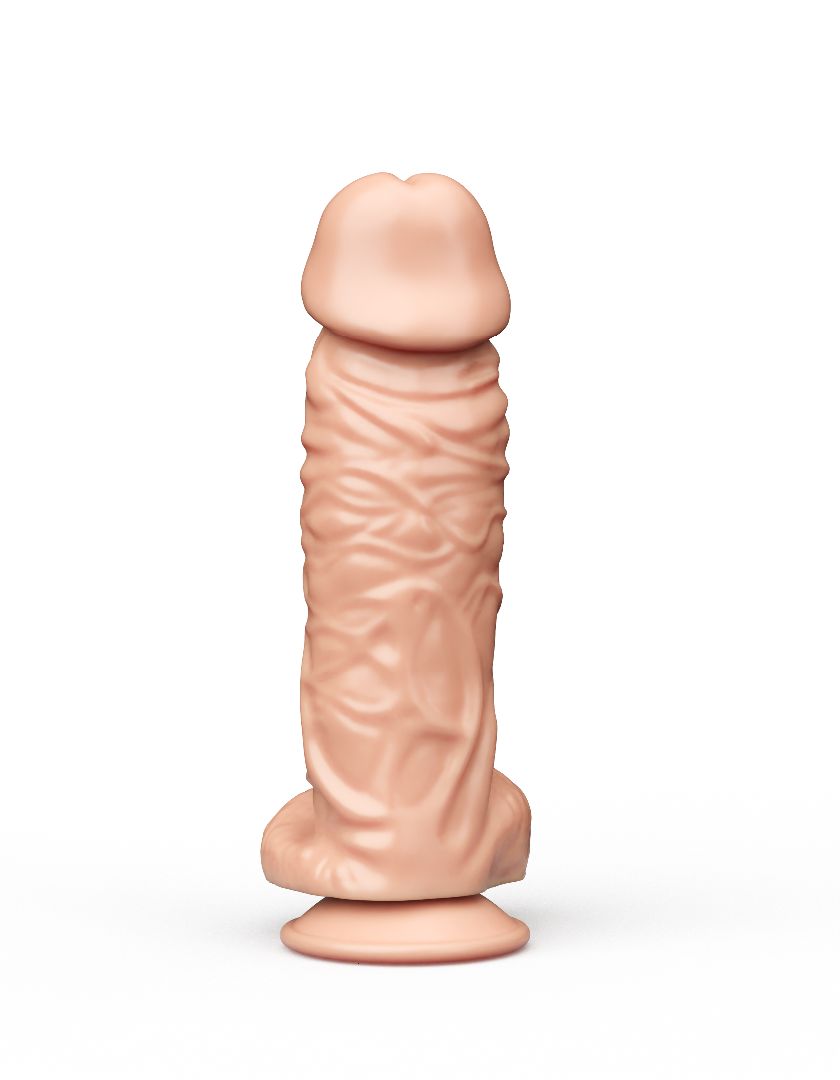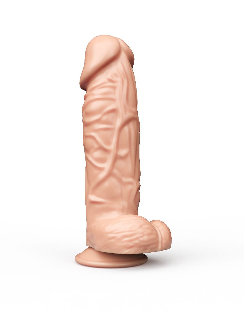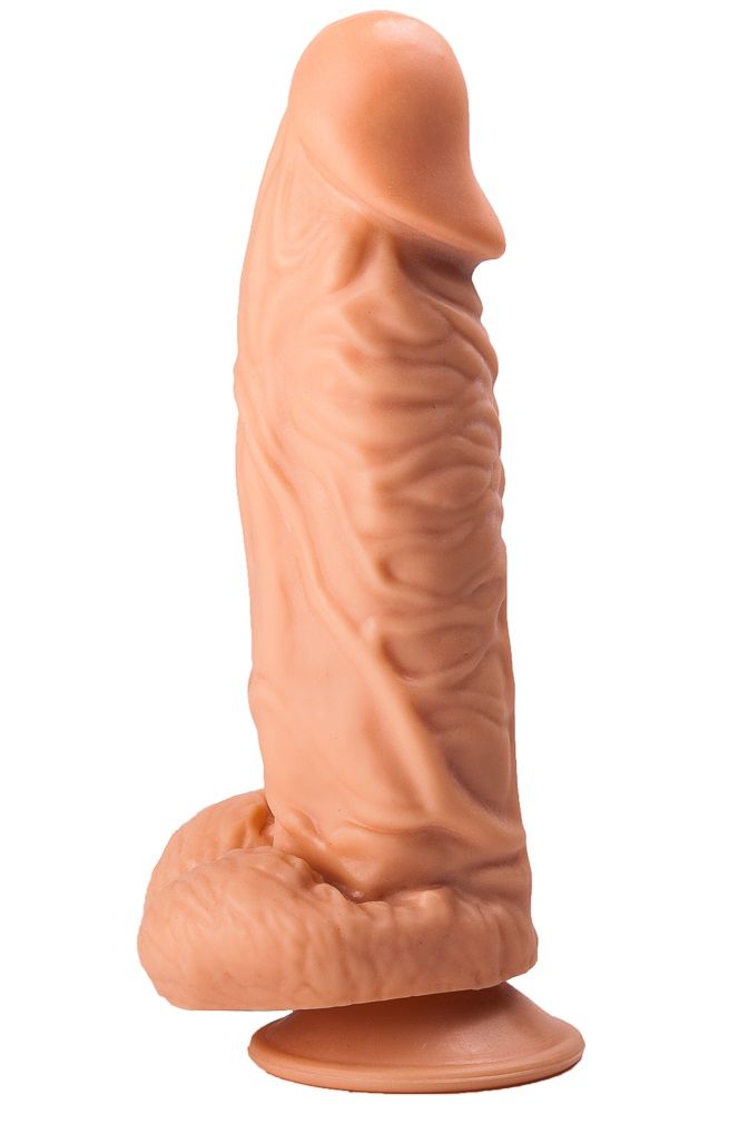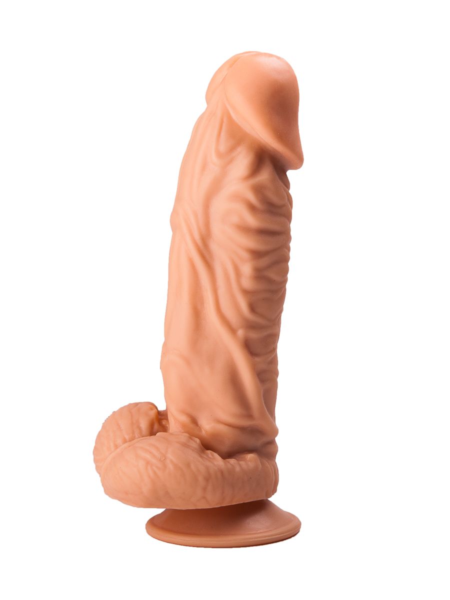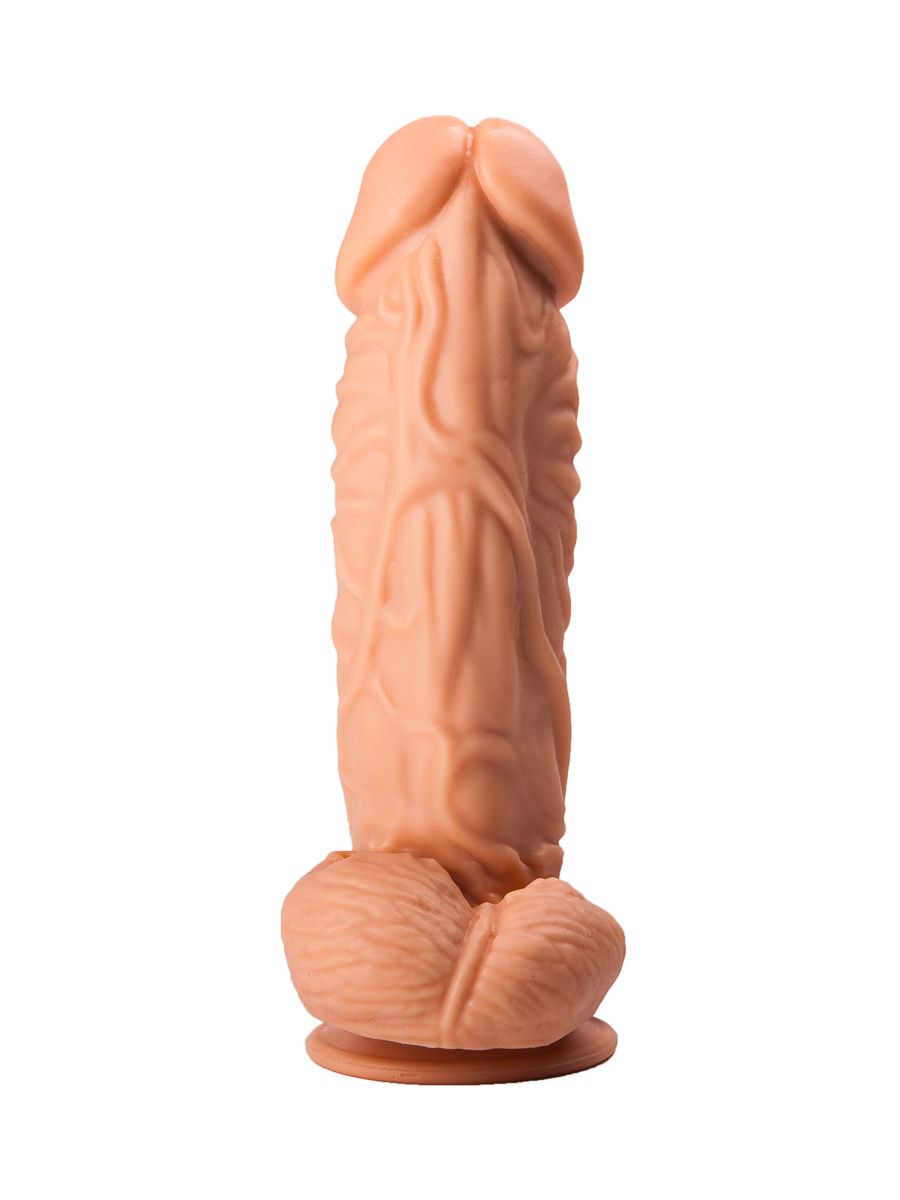Это невероятная секс-игрушка для ценительниц внушительных размеров члена. Изделие имеет реалистичный внешний вид: текстурированная выпуклыми венами поверхность, ярко выраженная головка и крупная мошонка в целом выглядят в точности, как настоящий пенис мужчины. Секс-игрушка имеет удобную присоску в своем основании, что позволяет ее хозяйке прикрепить аксессуар к любой поверхности (например, к столу). Рабочая длина – 16,5 см. Диаметр головки – 5,2 см.