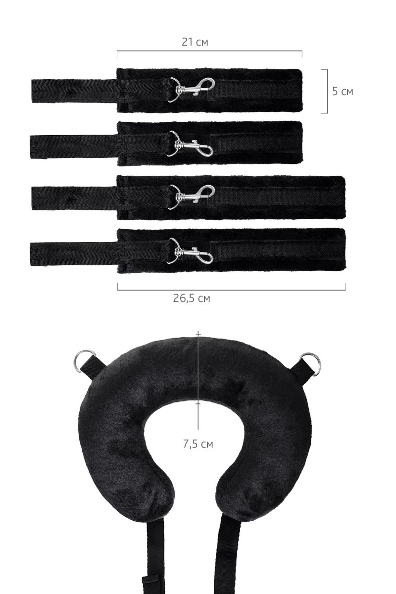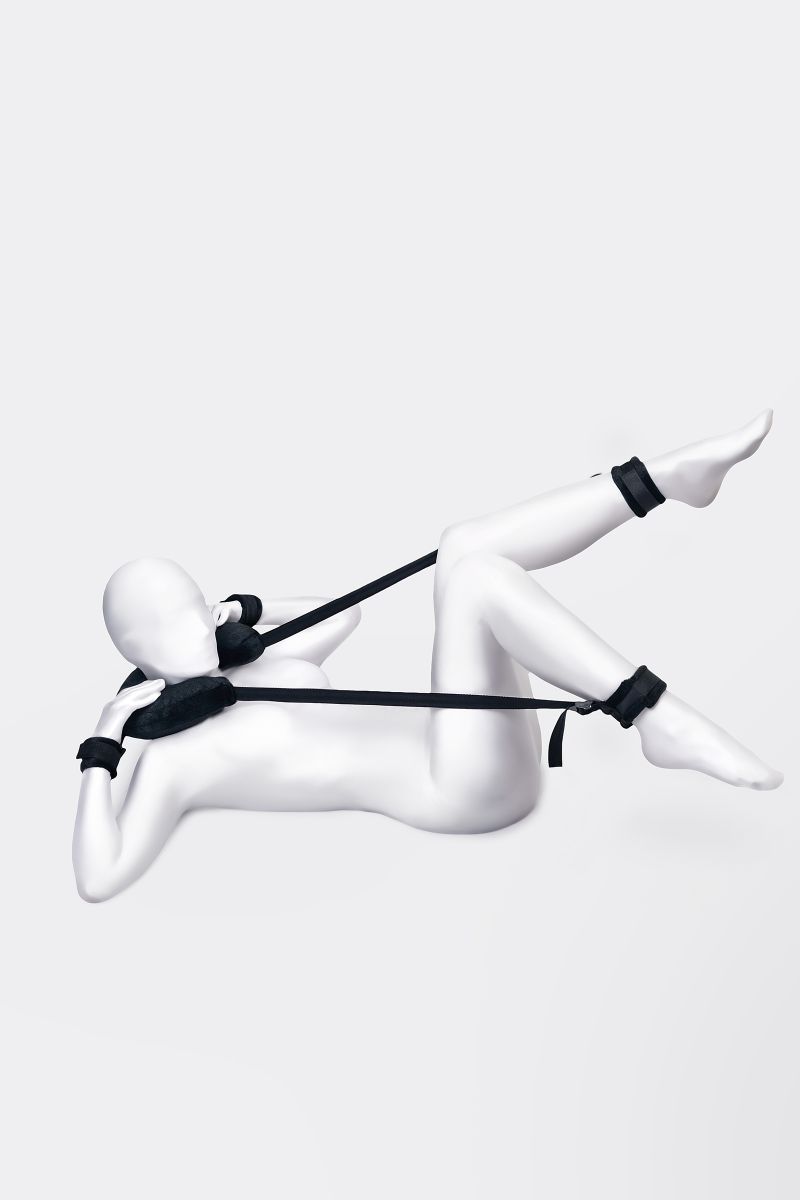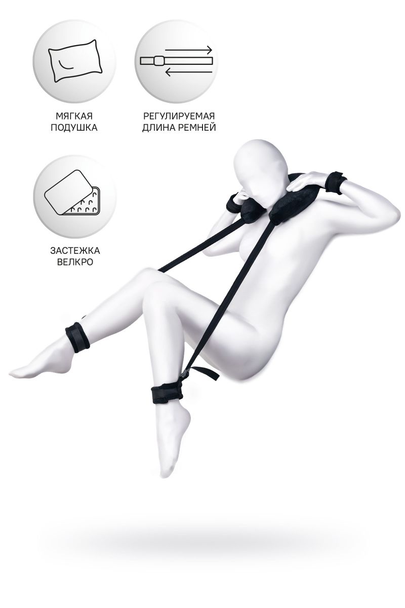 Чтобы экспериментировать и получать новые ощущения, необязательно быть опытным БДСМ-практиком. Главное, что должно волновать вас – это взаимное удовольствие. Для этого вам пригодится стропа для фиксации. Больше не нужно тратить силы на удерживание ног в нужной позиции. Мягкая подушка комфортно обхватывает шею, расслабляя ее и снимая нагрузку с позвоночника. Ремни регулируются и настраиваются по вашему желанию, чтобы удерживать бедра или лодыжки в нужном положении. Фиксирующая стропа оснащена также наручниками, позволяющим закрепить запястья у шеи, и лишить подчиняющегося партнера возможности двигать руками. Стропа для фиксации с подушкой для шеи поможет сосредоточиться на собственных ощущениях и подчиняться с комфортом. Общая длина – 127 см. Внешняя окружность подушки – 85 см, внутренняя – 37 см., ширина – 7,5 см. Длина наручников – 21 см., ширина – 5 см. Длина поножей – 26,5 см., ширина – 5 см.