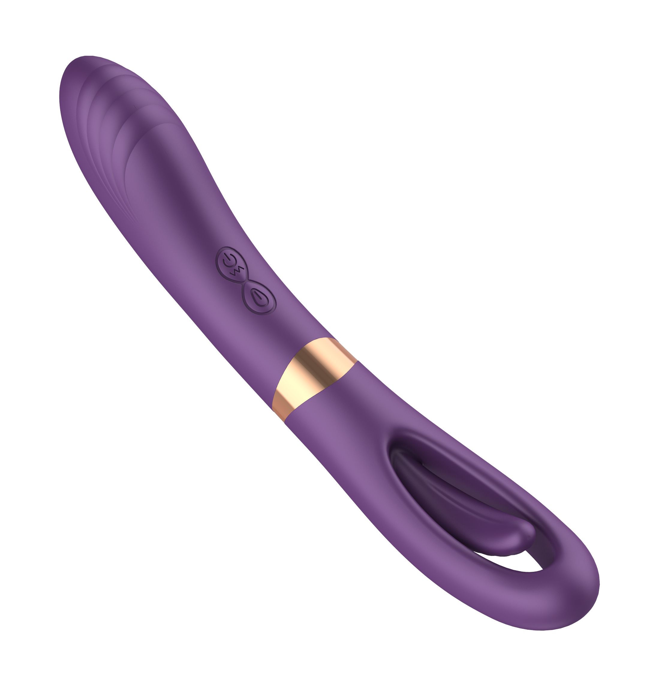 Фиолетовый силиконовый вибратор с функцией фингеринга – 23,5 см.
