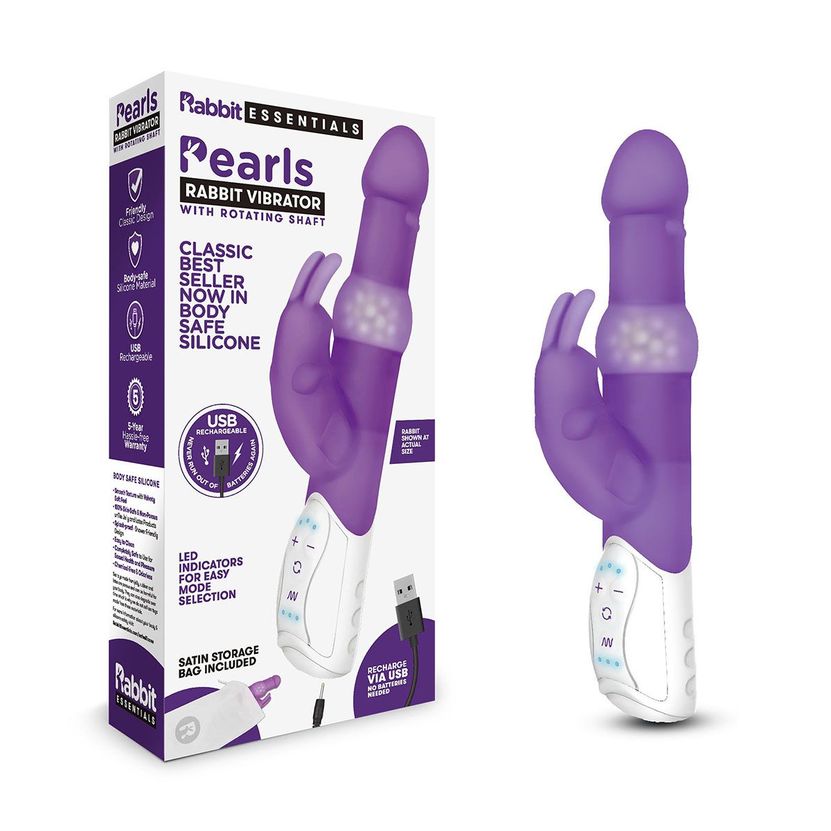 Отправьтесь в путешествие к высшему удовольствию с вибратором особой формы и ротацией чувственных жемчужин посередине ствола. Этот искусно разработанный вибратор имеет 3 скорости и 7 типов стимуляции. Вращающиеся шарики приносят дополнительное удовольствие, а мощные кроличьи ушки не забывают про самую чувствительную зону клитора. Вибратор изготовлен из не пористого, не содержащего химикатов, безопасного для тела силикона и его легко чистить. Имеет скрытый порт зарядки через USB. Этот премиальный продукт для удовольствия поставляется с бесплатной атласной сумкой для путешествий и светодиодным дисплеем, облегчающим выбор режима даже в темноте.