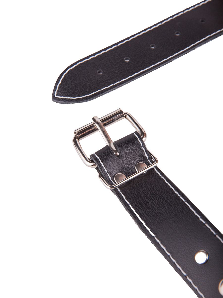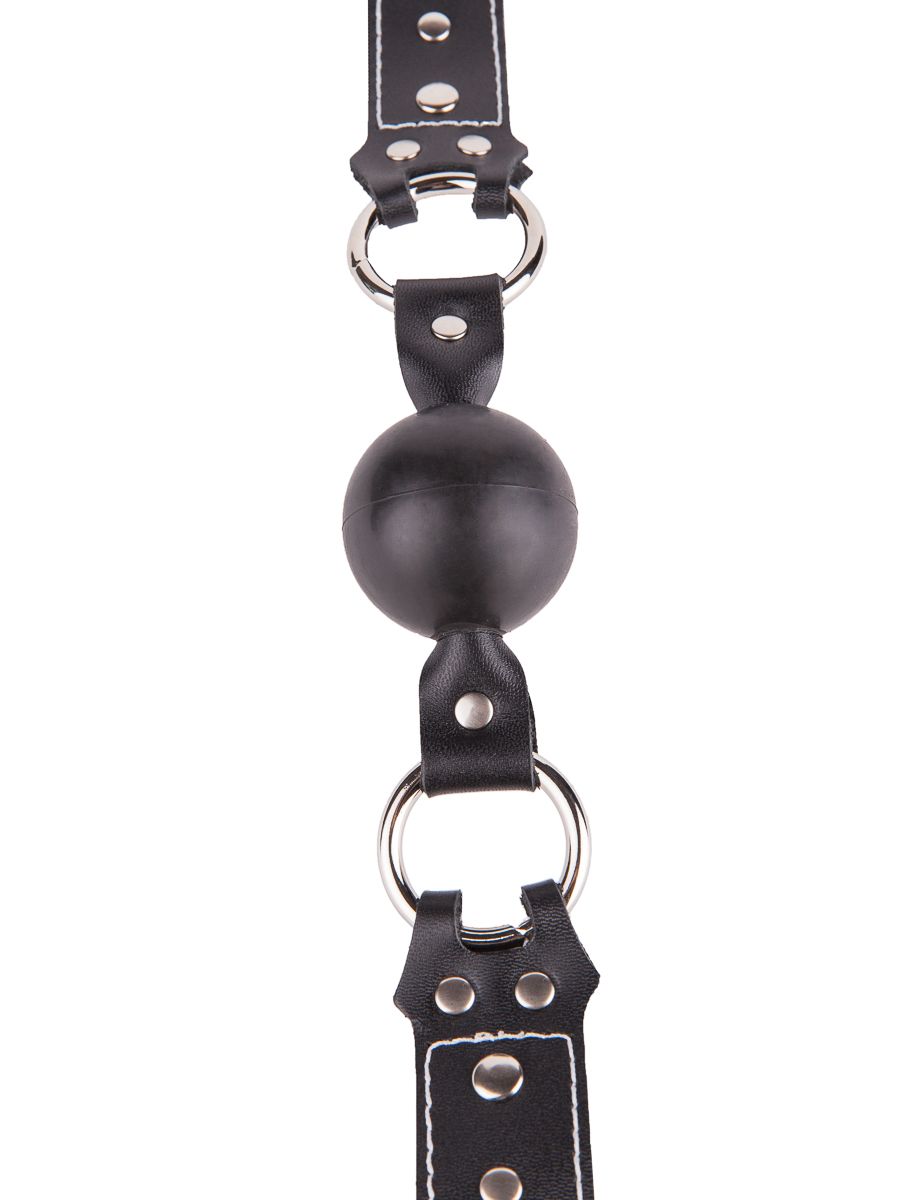 Кляп-шар классической формы и конструкции из натуральной высококачественной кожи. По периметру ремешков проходит декоративная белая строчка. Сферическая упругая часть кляпа изготовлена из современного материала ТЭП, который соответствует гигиеническим нормам и прост в уходе. Регулировка размера и фиксация производится при помощи пряжки. Вся металлическая фурнитура имеет никелевое покрытие. Ширина ремешков – 2,5 см. Диаметр шара – 4,5 см.