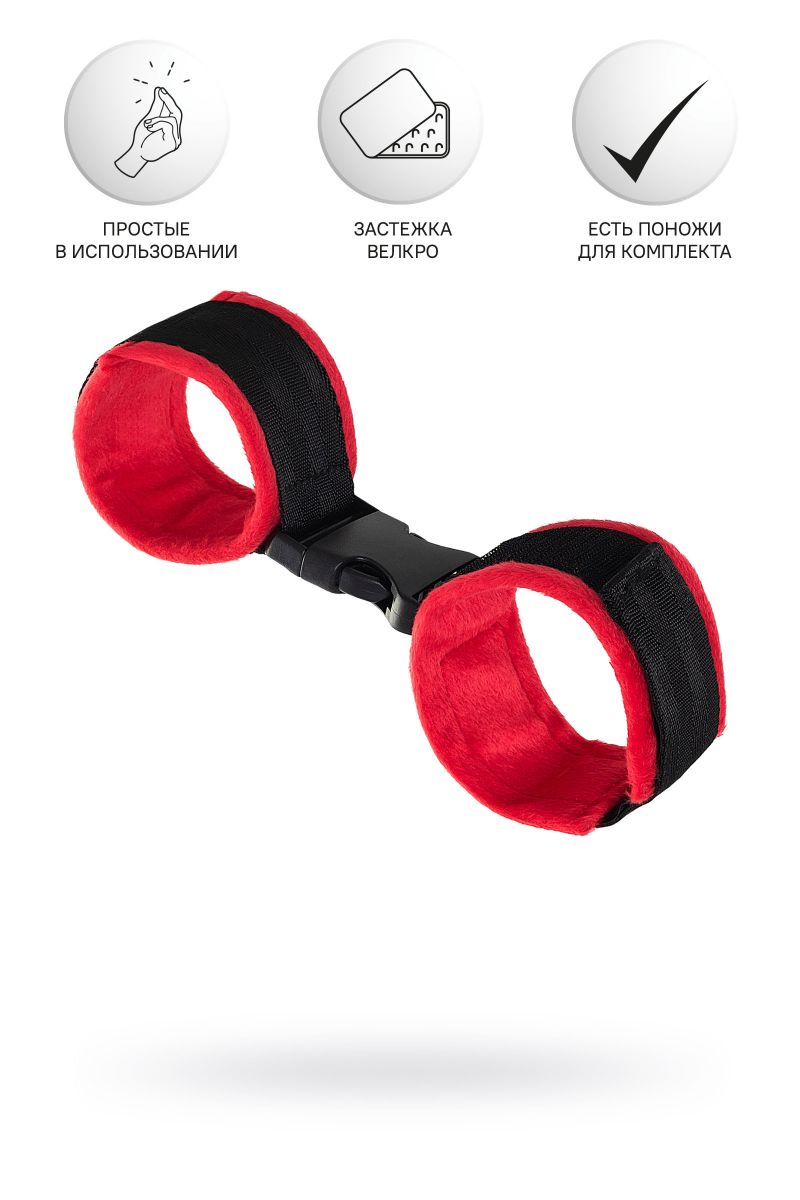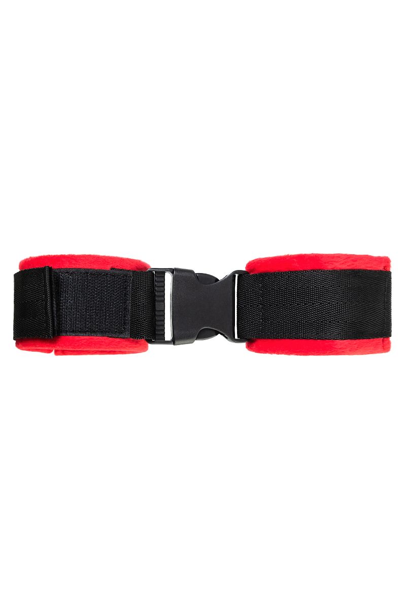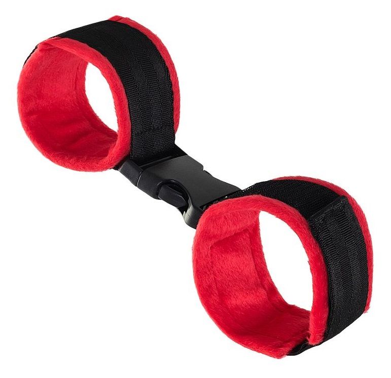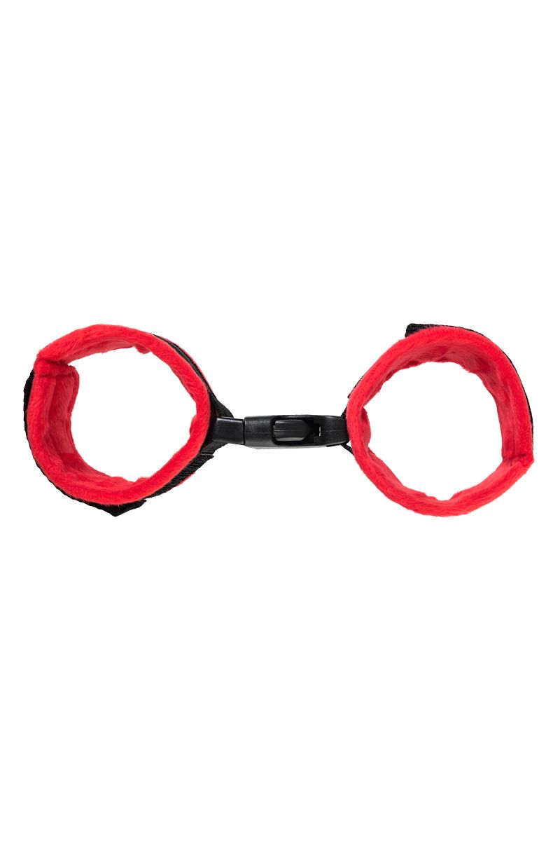 Красно-черные велюровые наручники Anonymo