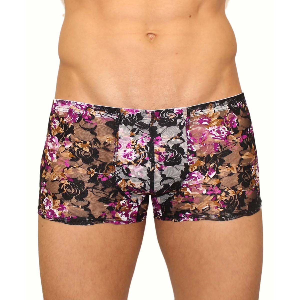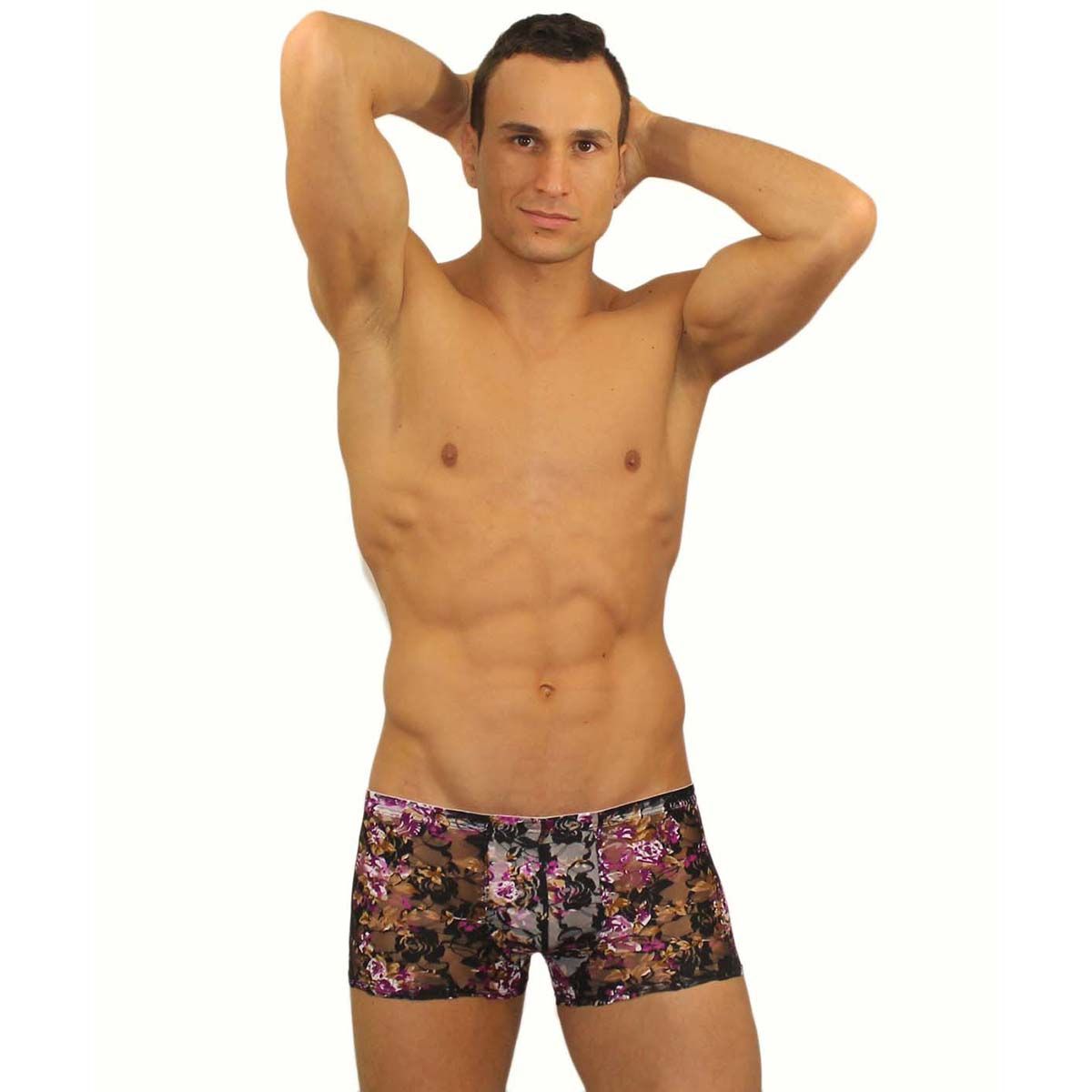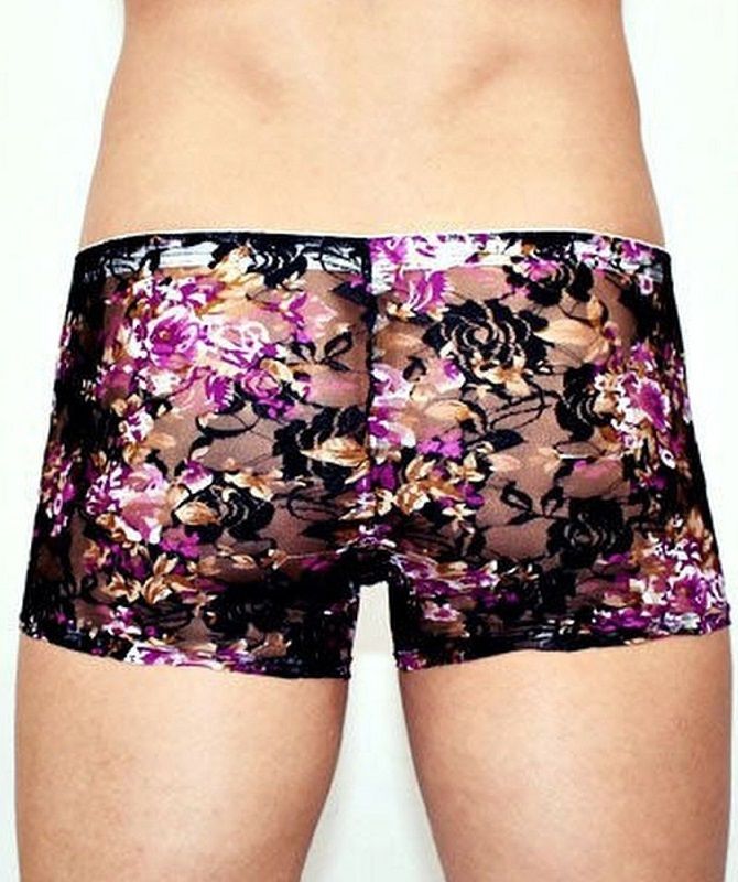 Кружевные мужские трусы-хипсы с цветочным узором.