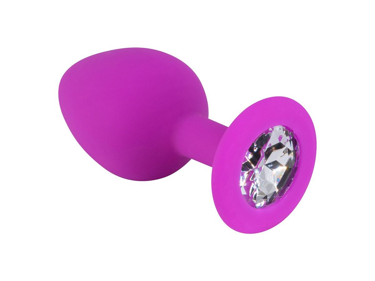 Лиловая средняя силиконовая пробка с прозрачным кристаллом