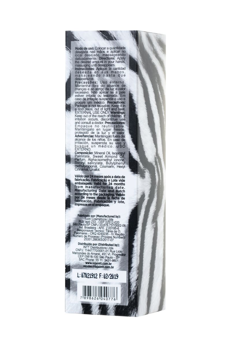 Массажное масло Intt Animals by Fatima Moura с возбуждающим эффектом — ритуал красоты и сексуальности в каждой капле. Бесподобно для любого массажа. Пробуждающие животные инстинкты афродизиаки, волнующая нежностью текстура масла и утонченный аромат превращают сеанс массажа в особенный ритуал. Вам будет хотеться только одного — отдаться чувствам без остатка. Безупречно для ухода за кожей. Комплекс ценных масел и витаминов придает коже мягкость, увлажненность и потрясающе ухоженный вид. Включите энергию страсти на полную с Intt Animals by Fatima Moura.