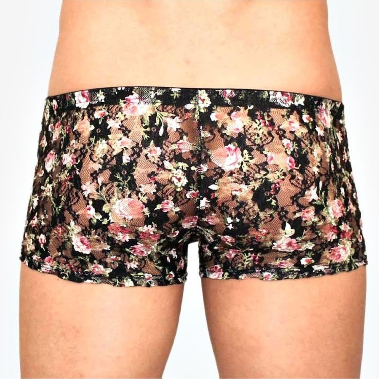 Мужские трусы-боксеры в сеточку с цветочным узором.