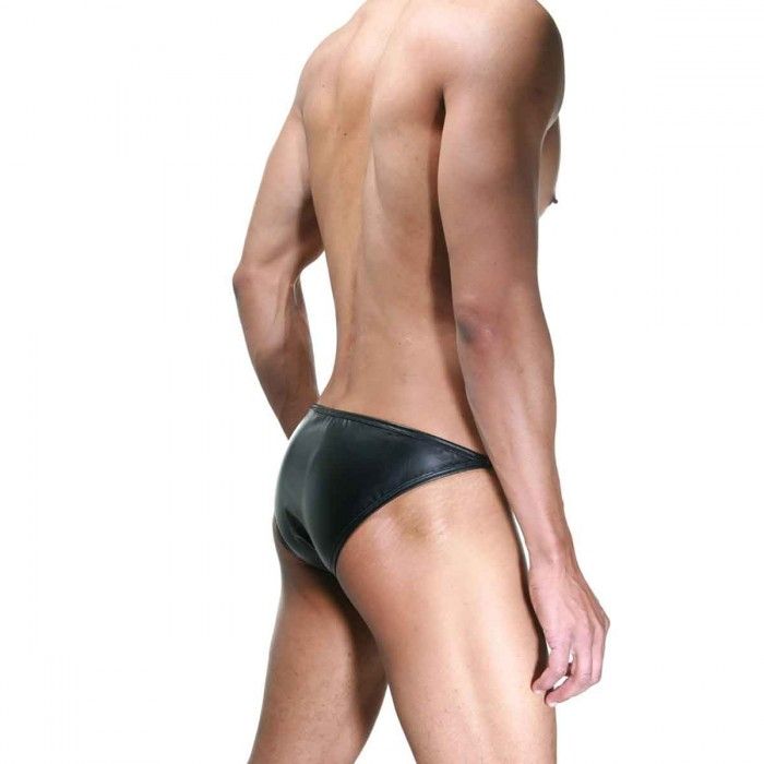 Гладкие черные мужские трусы-слипы, у которых по бокам вставлены красивые декоративные металлические элементы.
