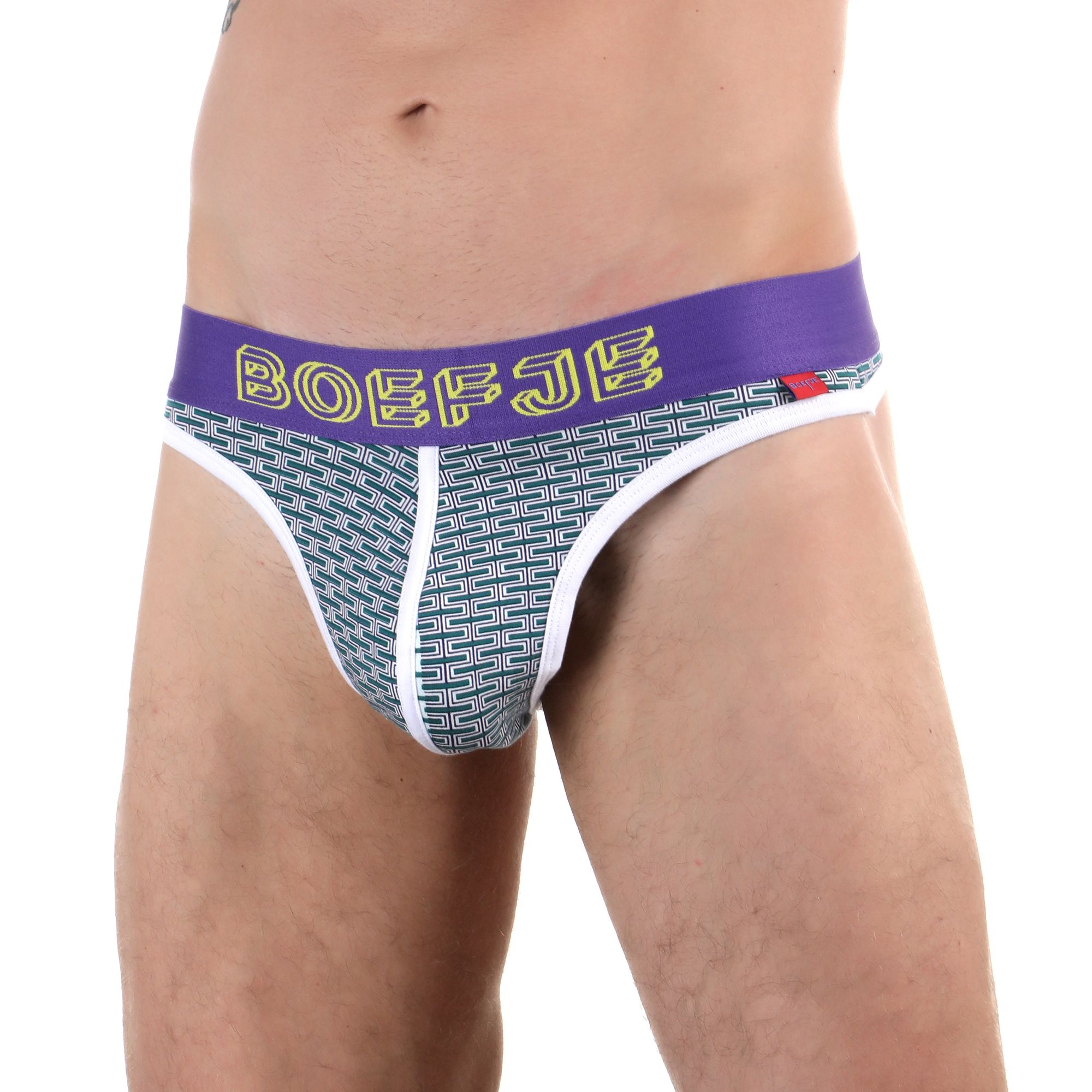 Мужские трусы-тонги с узором-кирпичиками и брендированным поясом.