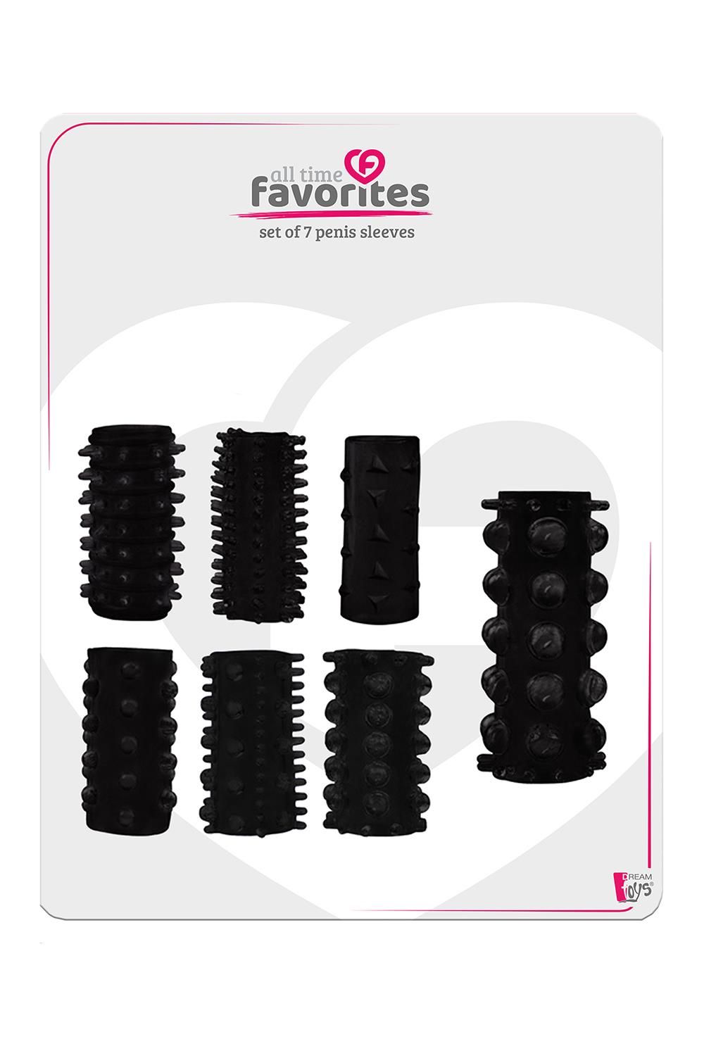 Этот набор из 7 насадок для пениса имеет 7 различных текстур. Они эластичны и из-за их плотной посадки работают как кольцо для пениса для более жесткой и продолжительной эрекции, а текстура стимулирует ее во время полового акта.