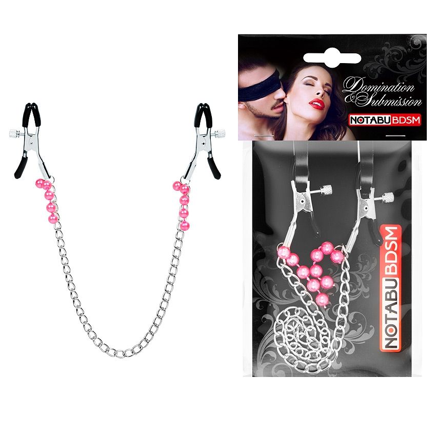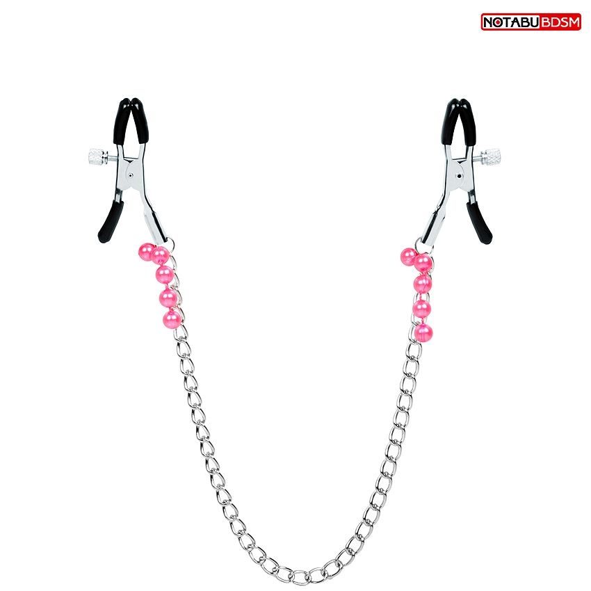 Оригинальные зажимы на соски с розовыми бусинками и цепочкой