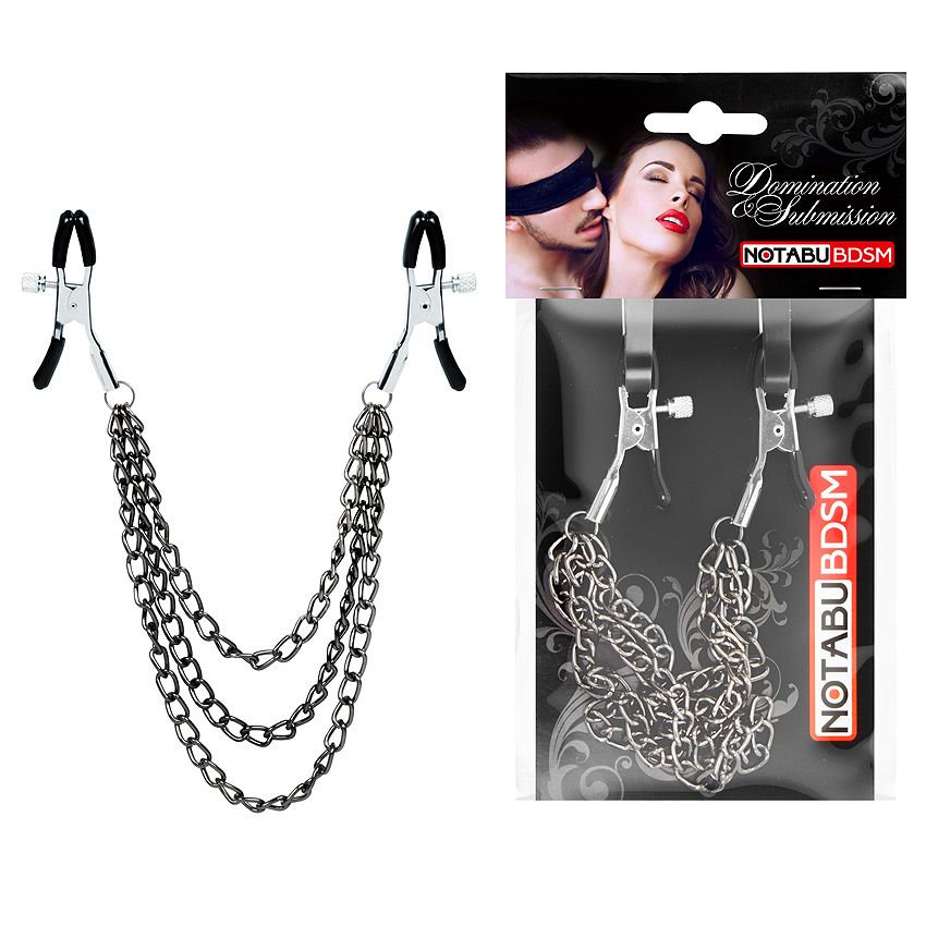 Изящные аксессуары для стимуляции сосков и усиления сексуального возбуждения. На концах зажимов имеются специальные эластичные накладки, препятствующие сильному сдавливанию и травмированию сосков. Подвески украшают секс-игрушки. На каждом изделии предусмотрен регулировочный винт, позволяющий контролировать силу сдавливания сосков. Интимные аксессуары могут использоваться соло или для парных любовных игр. Изделия просты в применении. Не требуют специального ухода.