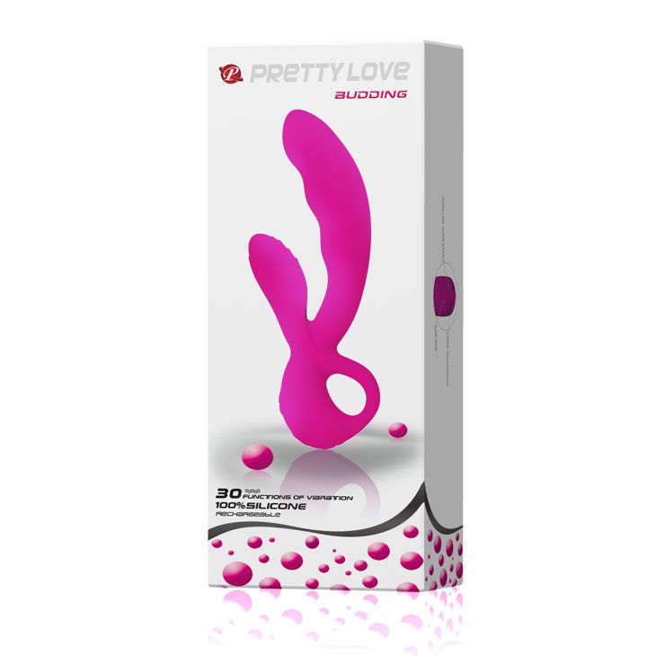 Вибромассажер эргономичной формы, средних размеров. Предназначен для одновременной стимуляции точки G и клитора, на теле массажера имеются три утолщения для точечного приложения вибраций. Имеет увеличенную в диаметре головку с волнообразными ребрышками для стимуляции точки G. Влагостойкий, перезаряжаемый массажер имеет 30 режимов вибрации. Оснащен двумя независимыми моторами. В основании находится кольцо-держатель, для комфортного извлечения. Сделан из гладкого, шелковистого силикона, очень приятного на ощупь. Рабочая длина – 13,5 см.