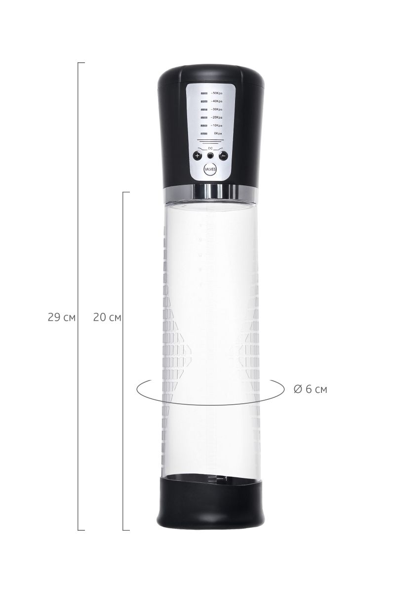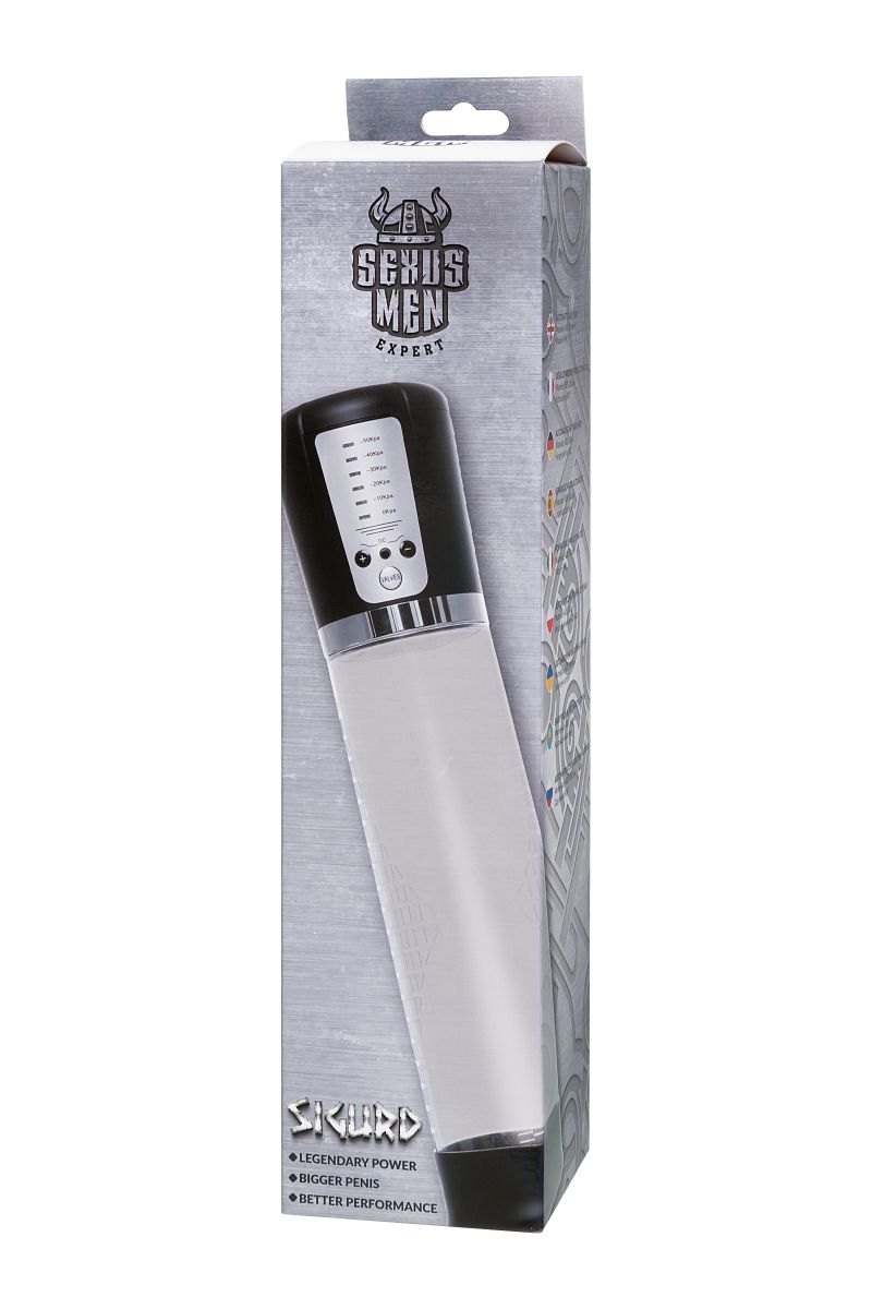 Автоматическая помпа на аккумуляторе Sigurd – для самых требовательных мужчин, которые стремятся к легендарной мужской силе. Сексуальное могущество для мужчины – не только крепкая и надежная эрекция, но и внушительный размер орудия. С автоматической помпой Sigurd серии Sexus Men Expert возможно достичь впечатляющих результатов в области увеличения размеров пениса, занимаясь пенбилдингом по эффективной программе тренировок. Для тренировки, а также чтобы подготовить себя к длительному и яркому сексу, вставьте свой пенис в колбу и откачайте воздух. С помпой Sigurd не нужно прилагать усилий для создания вакуума, она сделает это за вас комфортно и безопасно. Помпа имеет 5 уровней давления, которые регулируются кнопками +/ – на колбе с на LCD-индикаторами 10/20/30/40/50 Кпа. После сброса давления кнопкой Valves умное устройство само откачает воздух до заданного режима, остановится, и будет держать заданный уровень. Благодаря отрицательному давлению увеличивается приток крови к половому члену. Прозрачный ABS-пластик позволяет наблюдать как пенис набирает силу и увеличивается в размере. А измерительная шкала помогает отслеживать результаты прямо в процессе. Для достижения ощутимых результатов рекомендуются систематические занятия по программе эффективного тренинга, которая входит в комплект. Регулярное использование вакуумной помпы Sigurd от Sexus Men позволяет: последовательно увеличить длину и диаметр полового члена, делая его более внушительным и прокаченным сделать эрекцию более стабильной, крепкой и продолжительной повысить сексуальную выносливость и половое влечение поднять уверенность в своих возможностях и совершать новые сексуальные подвиги понизить вероятность образований аномальных фиброзных тканей. Помпа Sigurd комплектуется программой тренировок и USB-проводом для зарядки. Порядок работы помпы: -Включение: коротким нажатием на кнопку «+» помпа включается на нулевом уровне, загорается синий индикатор 0 Kpa -Повышение уровней: коротким нажатием на кнопку «+» последовательно повышайте уровни откачки воздуха. Шаг – 10 Kpa, красные индикаторы загораются рядом с отметками давления в помпе. Помпа останавливается на заданном уровне и поддерживает указанный индикатором уровень давления. Если вы сбросите давление кнопкой «VALVES», помпа автоматически откачает воздух до заданного уровня. -Понижение уровней: сбросьте давление кнопкой «VALVES», а затем коротким нажатием на кнопку «-» последовательно понижайте уровни давления в помпе. Шаг – 10 Kpa, красные индикаторы загораются рядом с отметками давления в помпе. Помпа останавливается на заданном уровне и поддерживает указанный индикатором уровень давления. -Сброс давления: кнопкой «VALVES» помпа сбрасывает давление в колбе. Если вы не понизили уровень, то помпа автоматически восстановит его до указанного красным индикатором. -Выключение: последовательно понижайте уровни кнопкой «-» до 0 Kpa, отмеченного синим индикатором. Через 5 секунд помпа отключится сама. Перед тем, как извлечь член из помпы, сбросьте давление кнопкой «VALVES». Длина колбы – 20 см