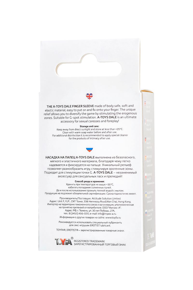 Насадка на палец A-Toys Dale выполнена из безопасного, мягкого и эластичного материала, благодаря чему легко надевается и фиксируется на пальце. Уникальный рельеф позволяет разнообразить игру, стимулируя эрогенные зоны. Подходит для стимуляции точки G. A-Toys Dale – незаменимый аксессуар для сексуальных ласк и прелюдий!